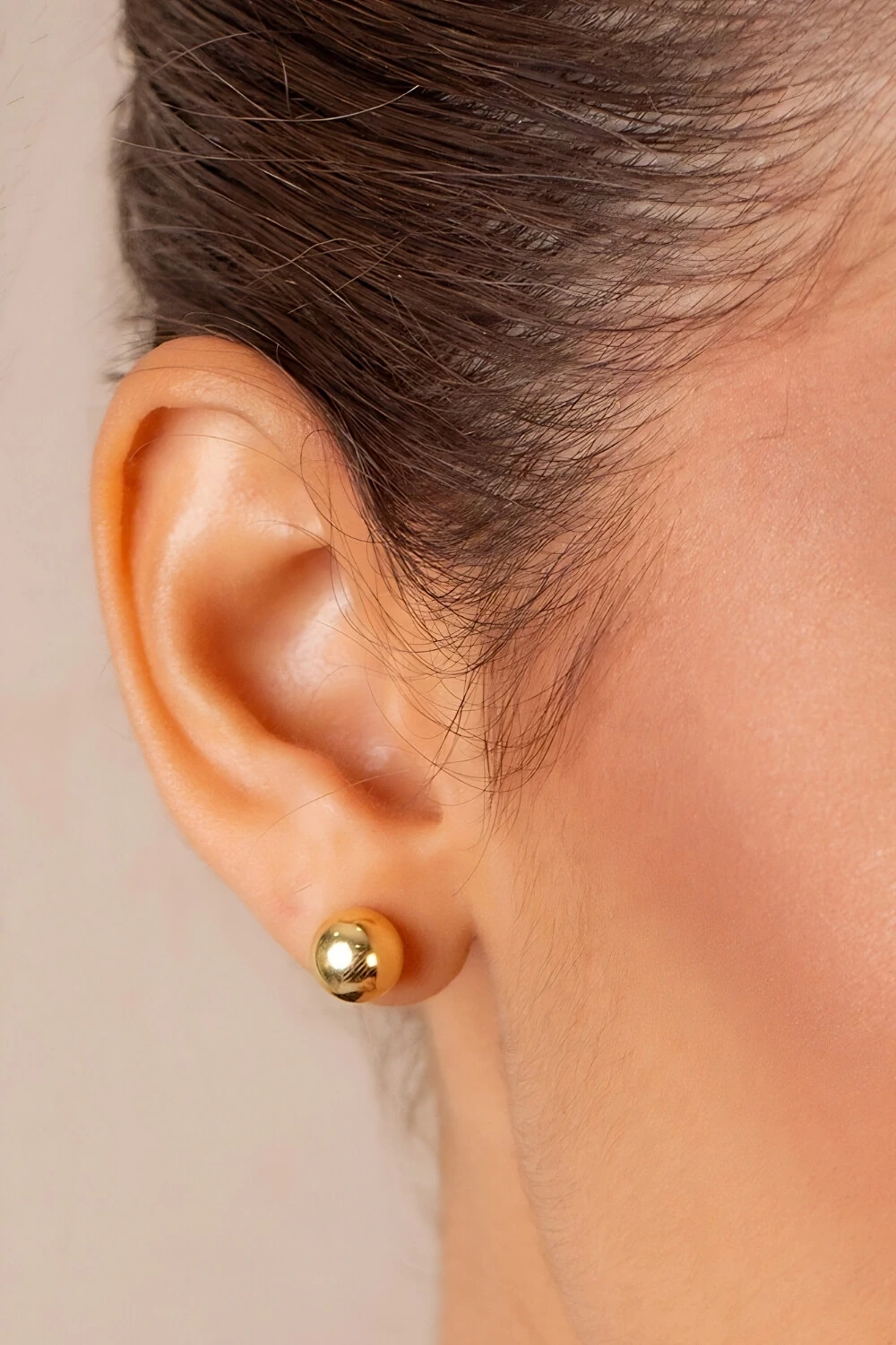 Brinco mini bola, folheado. Esse é para quem gosta do clássico minimalista, pode ser usado também como segundo furo