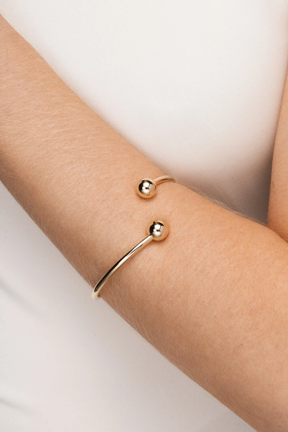 Pulseira estilo bracelete com esferas metal liso.