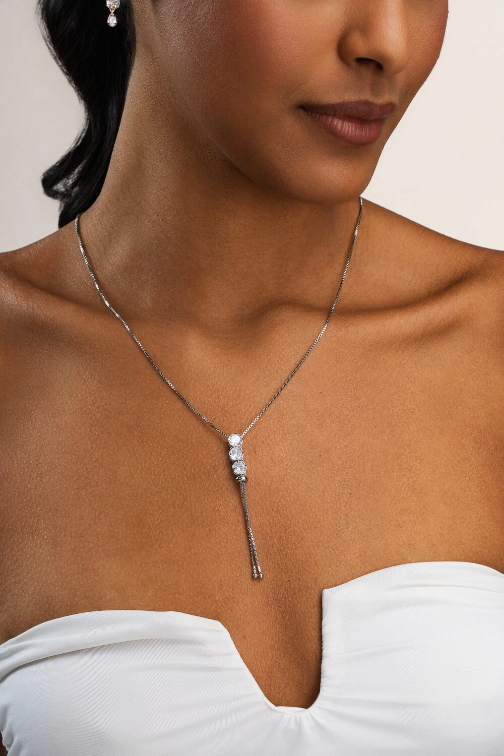 Colar prateado corrente veneziana ajustável com três zircônias. Simplesmente perfeito e apaixonante.