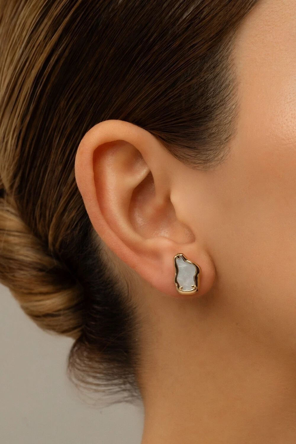 Brinco dourado design orgânico com detalhes em acrílico branco perolado. Moderno este brinco traz elegância e leveza em cada detalhe. O contraste entre o dourado sofisticado e o acrílico branco perolado cria um visual delicado e ao mesmo tempo marcante.