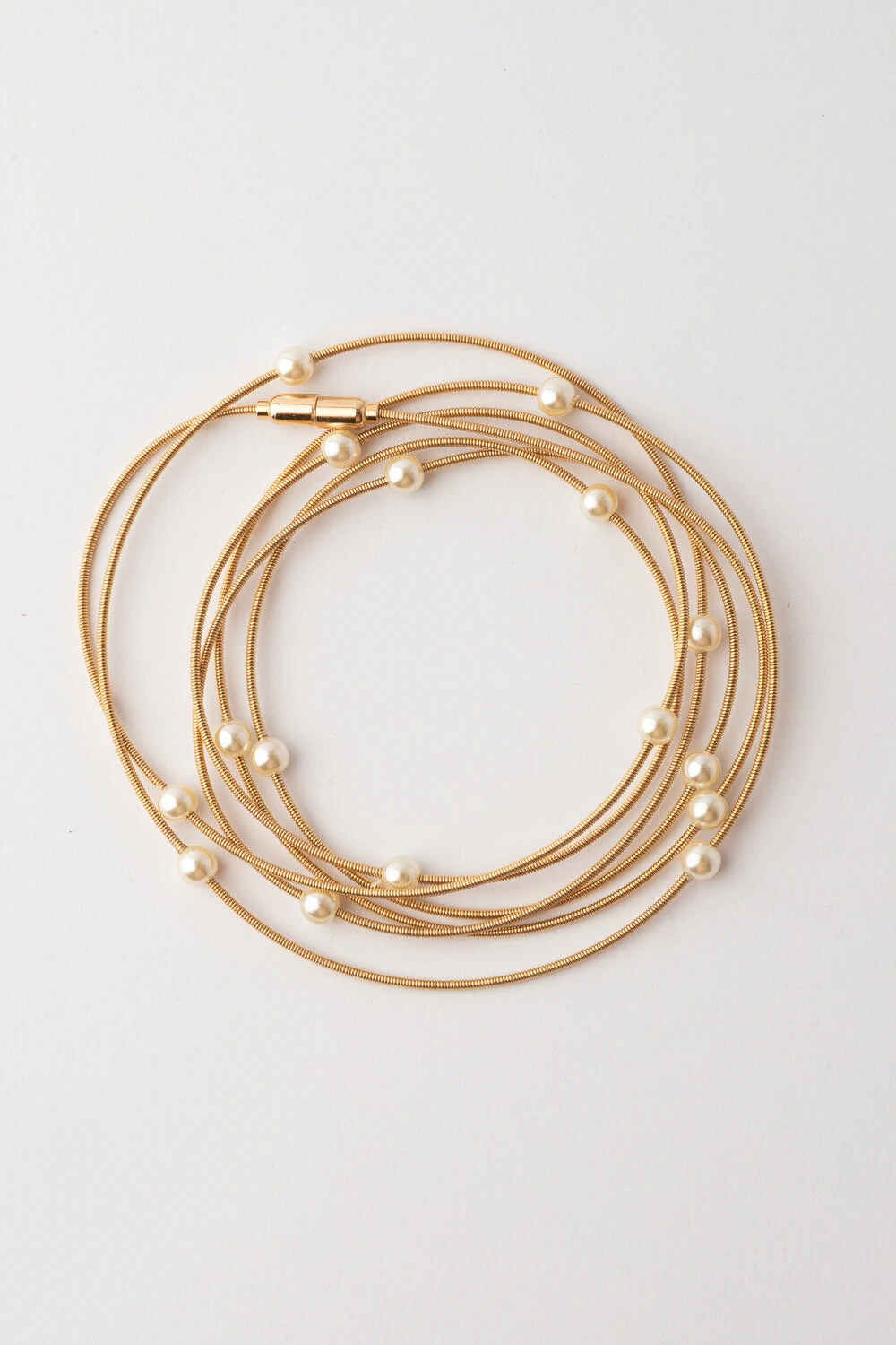 Pulseira dourada cordão de violão com detalhes em perola , Atemporal, cheia de estilo e super versátil, fácil de combinar e pode compor qualquer pulseirismo, pode ser usada também como colar, dando charme e sofisticação.