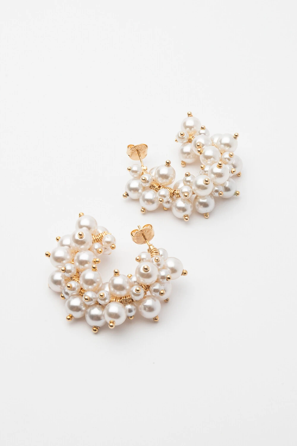 Brinco argola traz um fio aramado em acabamento dourado que sustenta elegantemente várias pérolas . Uma peça versátil, perfeita para compor looks sofisticados com um toque de originalidade.