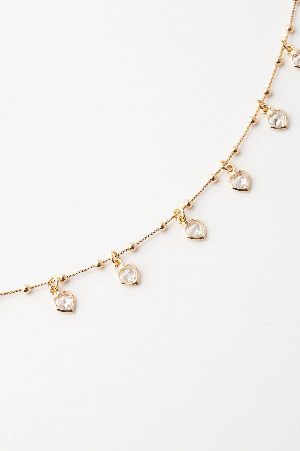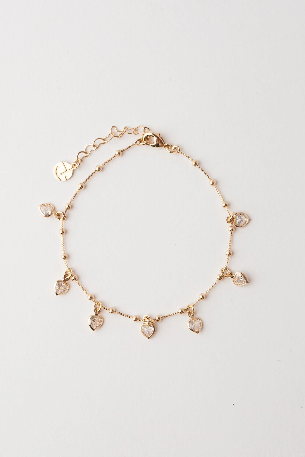 Pulseira Bolinhas e corações de zircônias Banho Ouro 18K, Essa pulseira fica linda tanto sozinhas quando acompanhadas em um mix com outras pulseiras lisas ou mesmo cravejadas. As zircônias e os corações dispostas pela corrente dão um brilho especial.