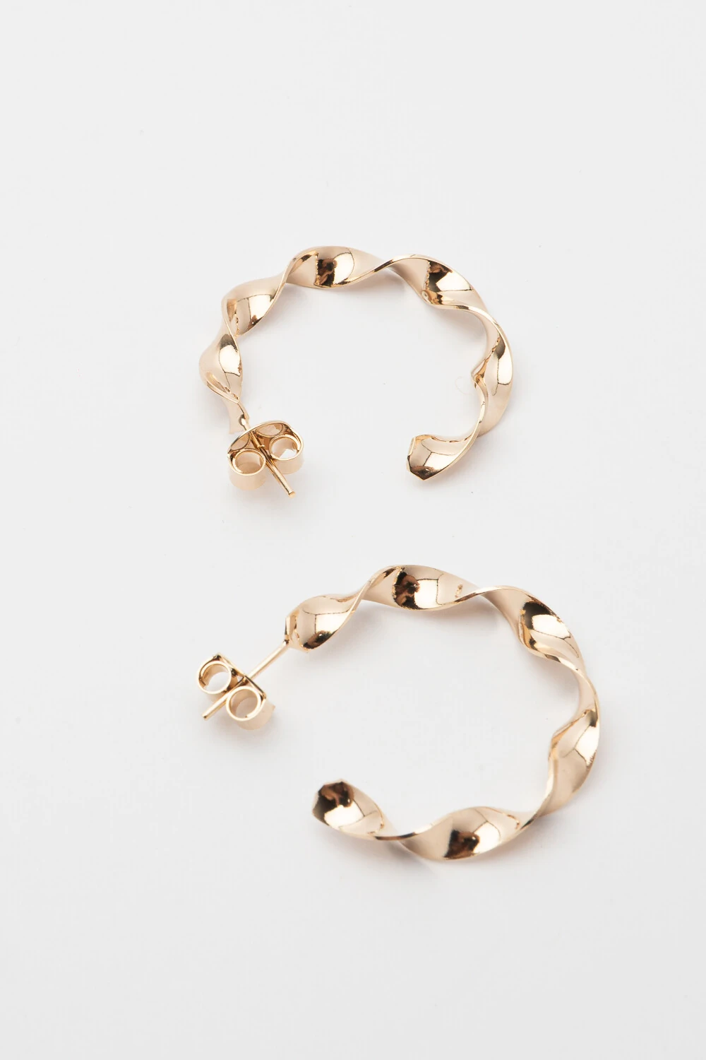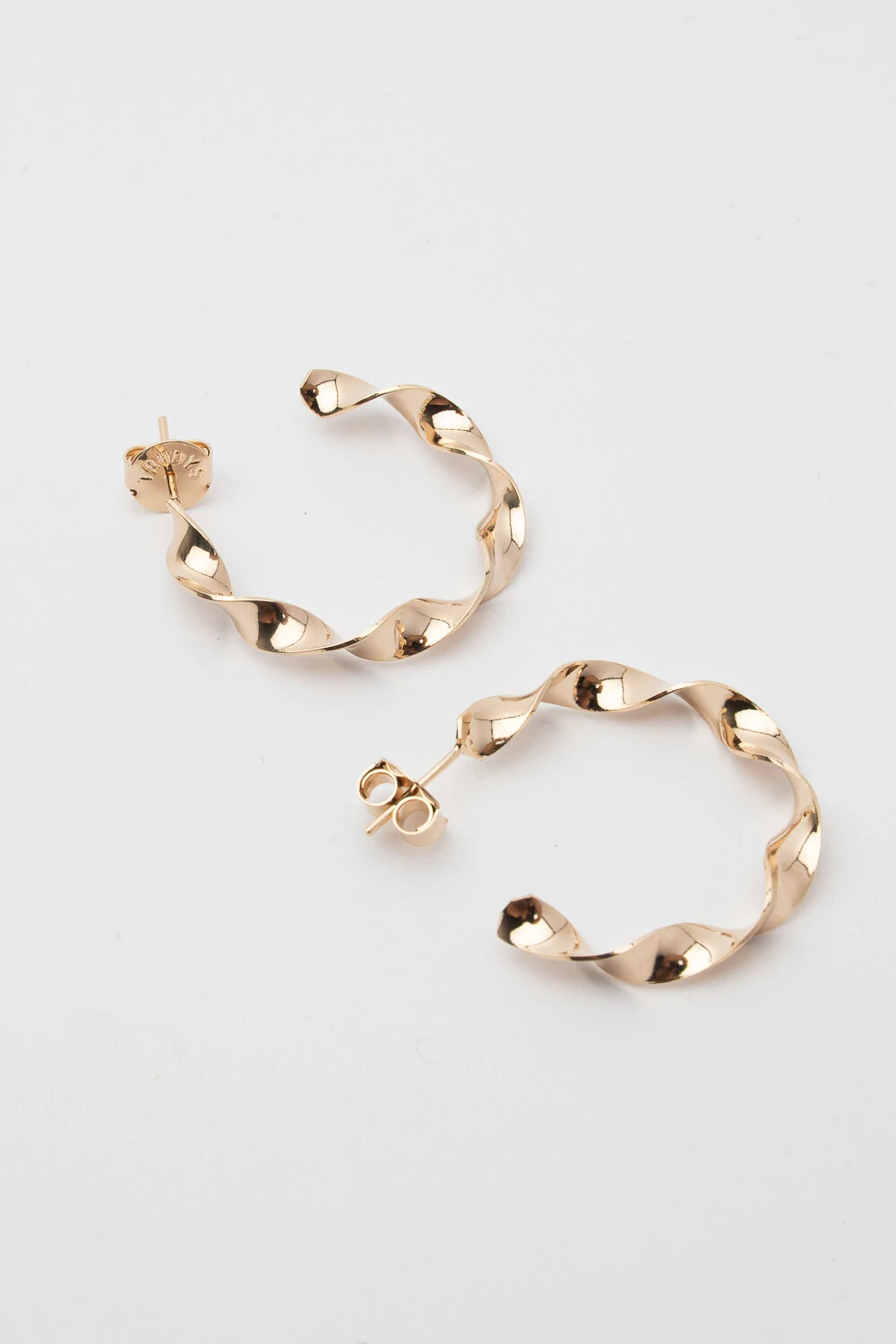 Argola aberta dourada formato de fita metal liso, Essa peça é um clássico que traz leveza e um toque moderno a sua produção.