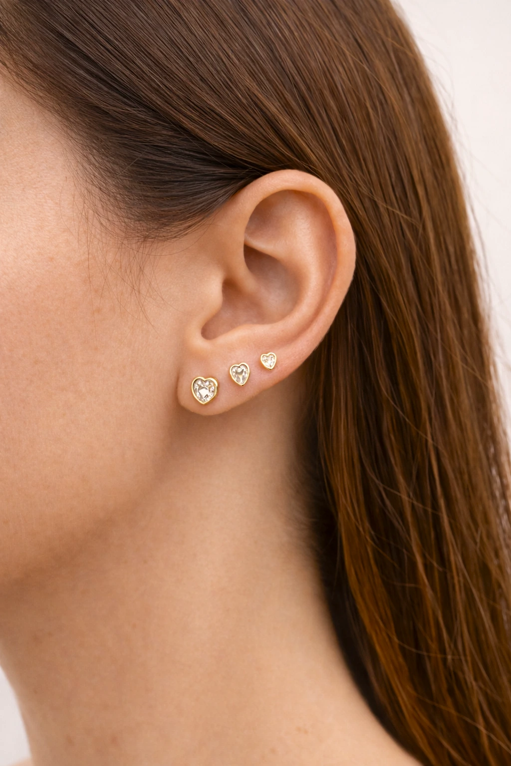 Brinco Trio coração Zircônia no banho ouro 18k . Use os três brinquinhos juntos para realizar um mix encantador.