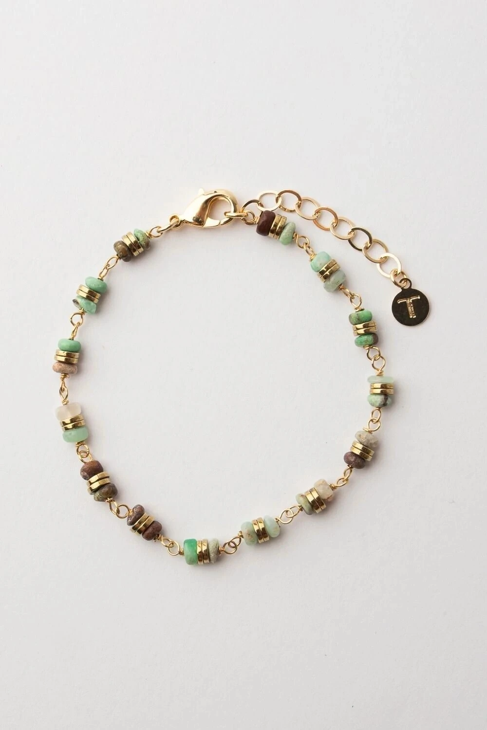 Pulseira autoral de crisoprásio com hematita uma combinação poderosa de beleza natural e propriedades energéticas.