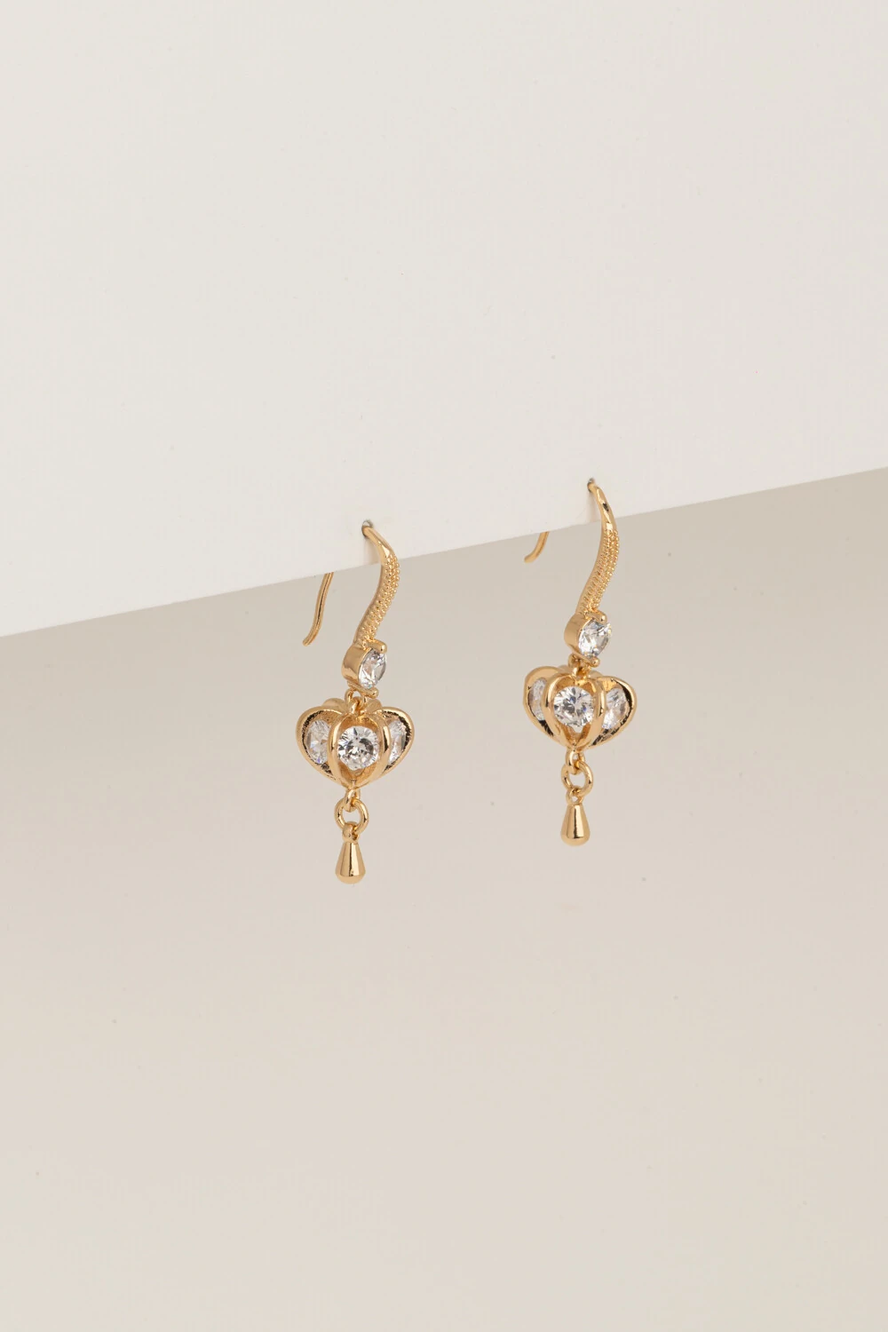 Brinco Coração Zircônia Vazado Banho Ouro 18K