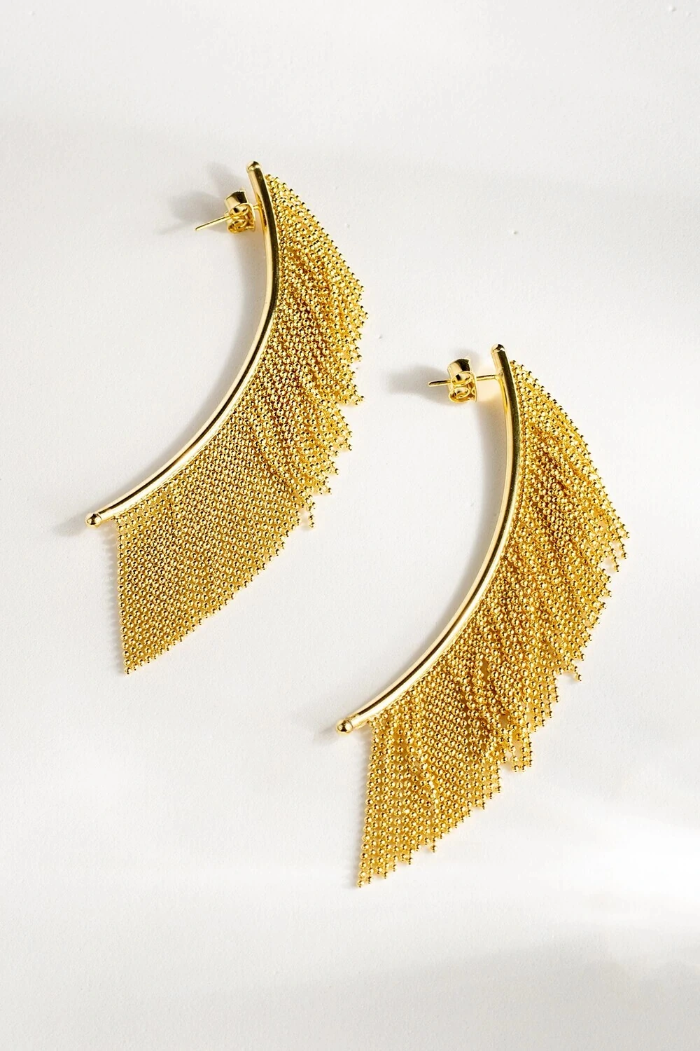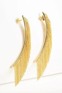 Sofisticado e moderno, o brinco dourado palito longo com franja é perfeito para adicionar movimento e brilho ao visual. Seu design delicado e elegante, valorizando qualquer produção — do dia a dia a eventos especiais. Uma peça versátil e cheia de charme.