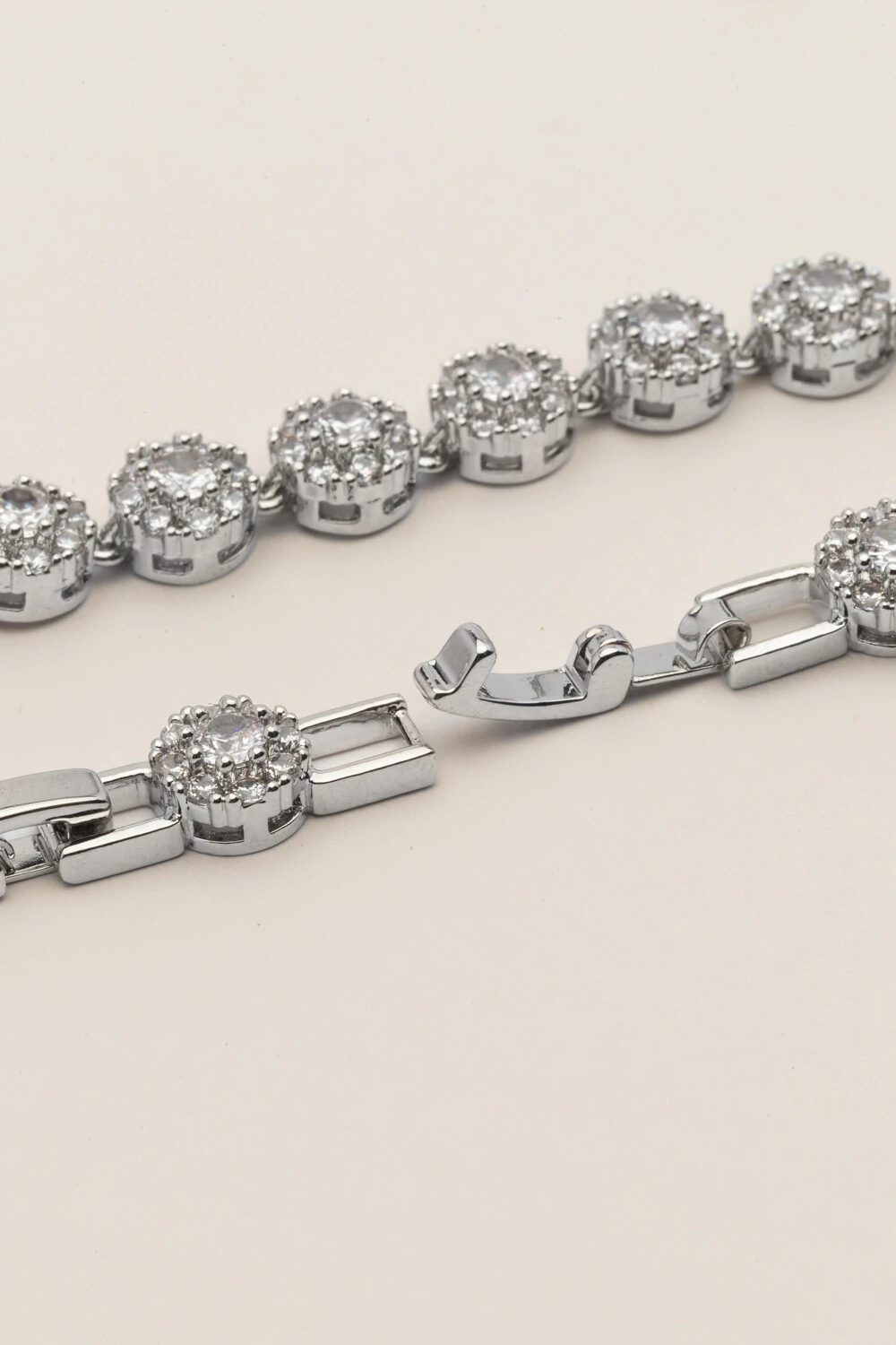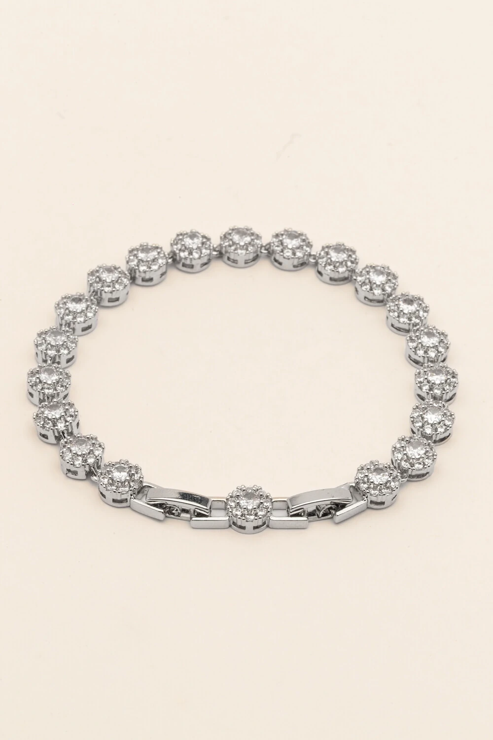 Este modelo estilo Riviera possui delicadas flores cravejadas com zircônias na cor cristal, garantindo um brilho elegante e atemporal. Seu design refinado valoriza o pulso e combina com qualquer ocasião do dia a dia a eventos especiais.