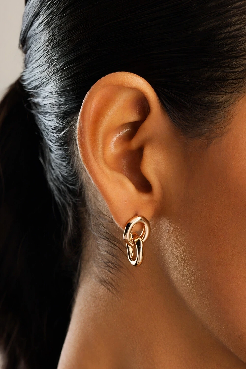 Brinco dourado com elos orgânicos . Uma peça básica mais super charmosa que deixa sua produção do dia dia mais elegante.