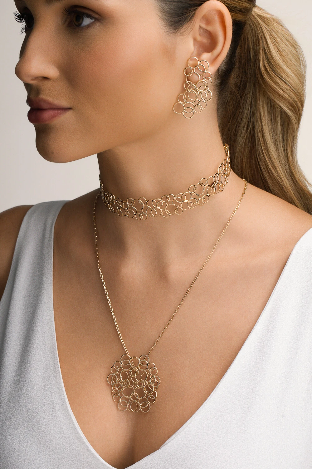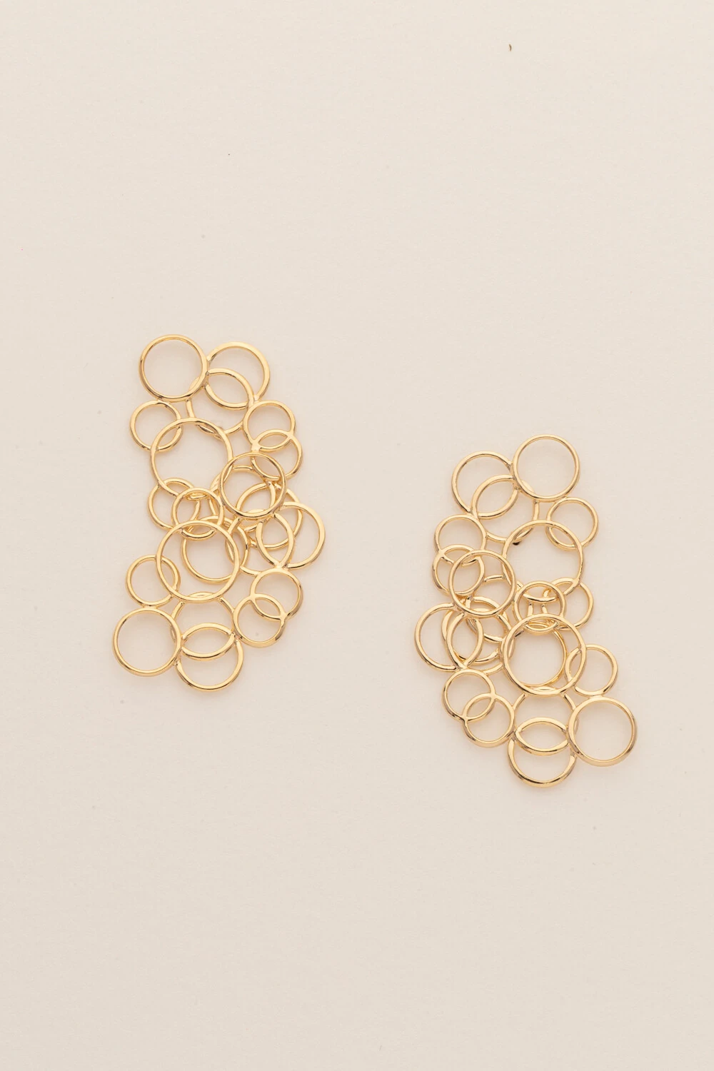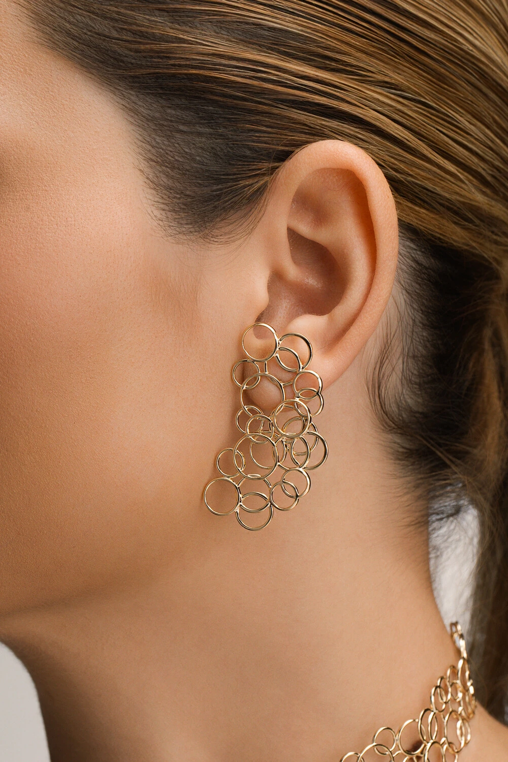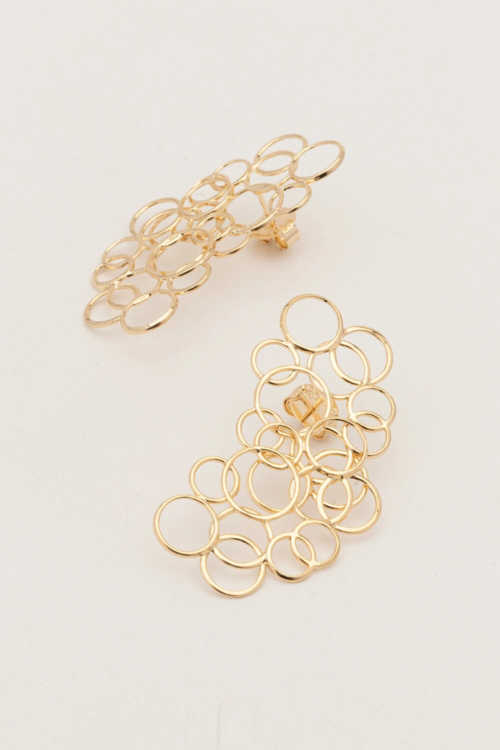 Brinco dourado com círculos vazado, design moderno leve e confortável de usar, garantindo um toque de elegância que pode elevar qualquer look.