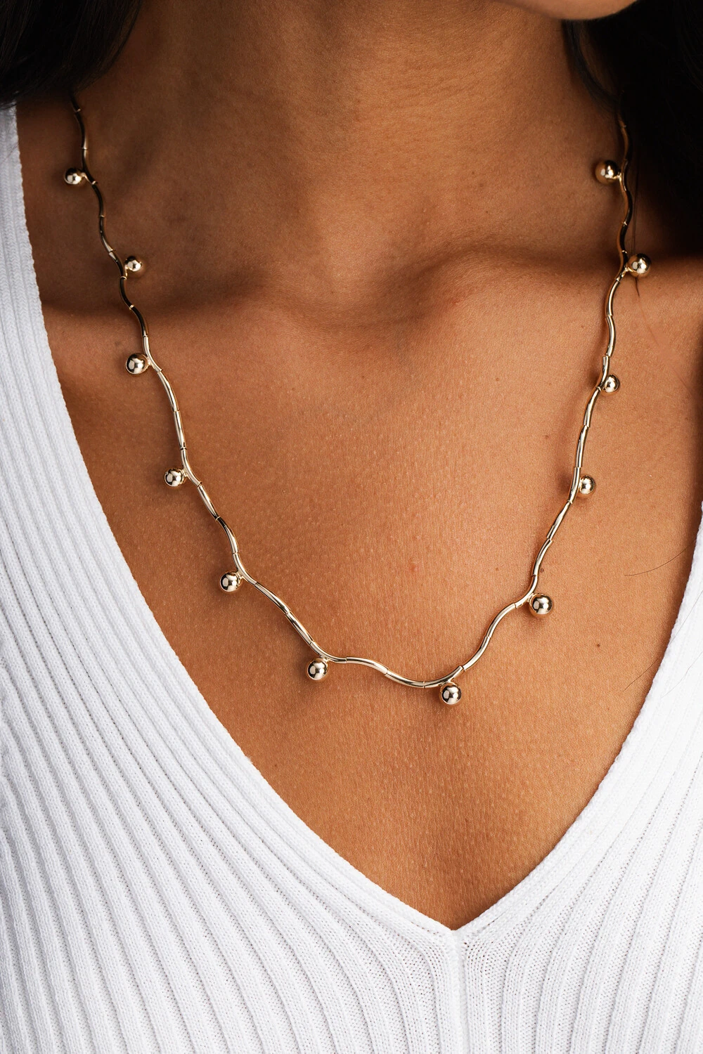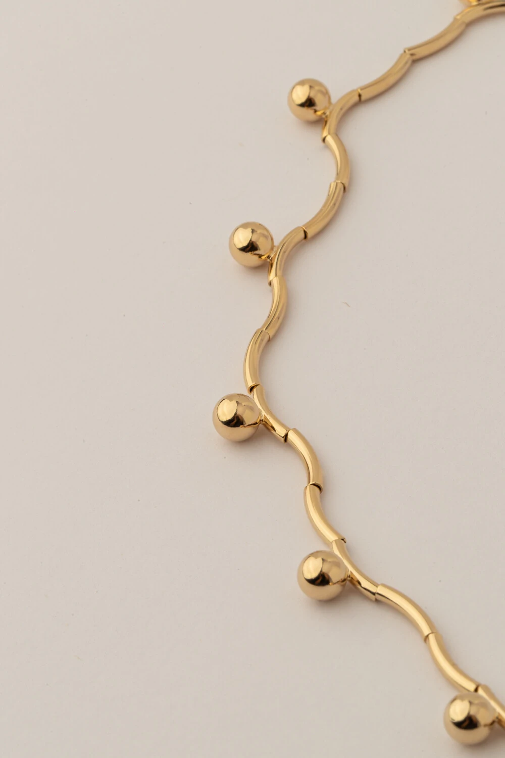 Colar esferas tubos dourado traz um design moderno e minimalista que une formas geométricas e elegância. As esferas e tubos metálicos criam um equilíbrio entre sofisticação e estilo contemporâneo, perfeito para complementar produções casuais ou refinadas.
