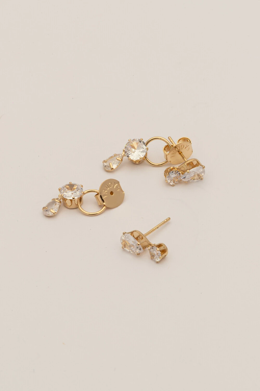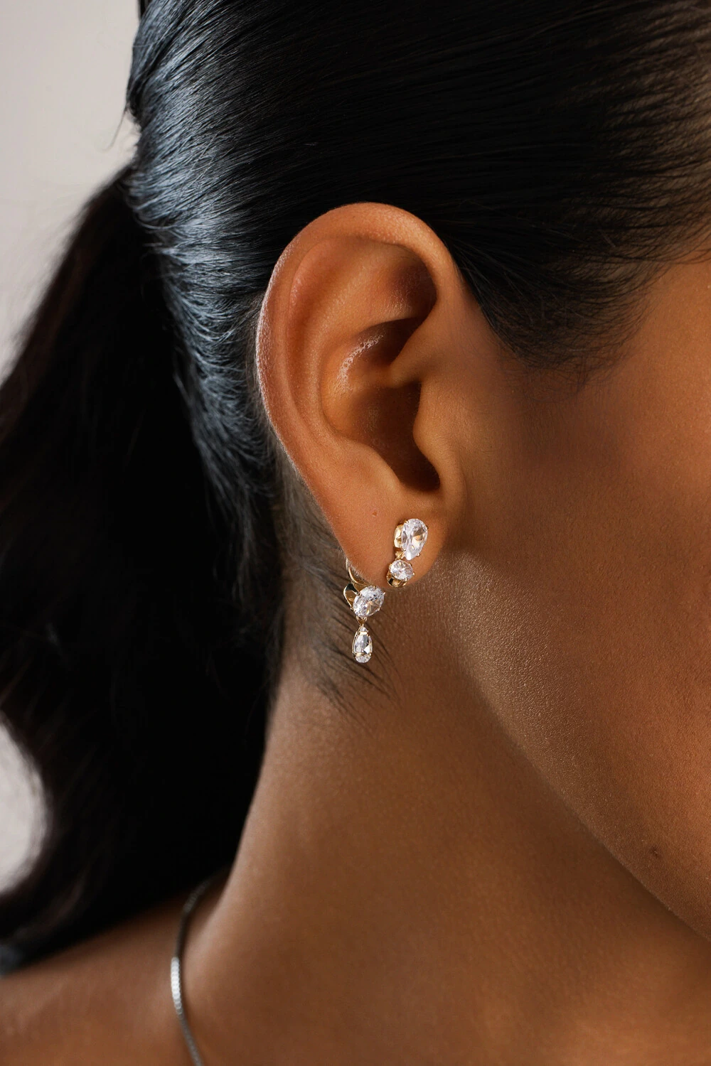 Brinco duplo com mix de zircônia, combina elegância e brilho em uma composição sofisticada. Seu design em duas partes cria um efeito moderno e delicado, enquanto as zircônias em diferentes tamanhos refletem a luz com intensidade e charme. Perfeito para iluminar o rosto e elevar qualquer produção.