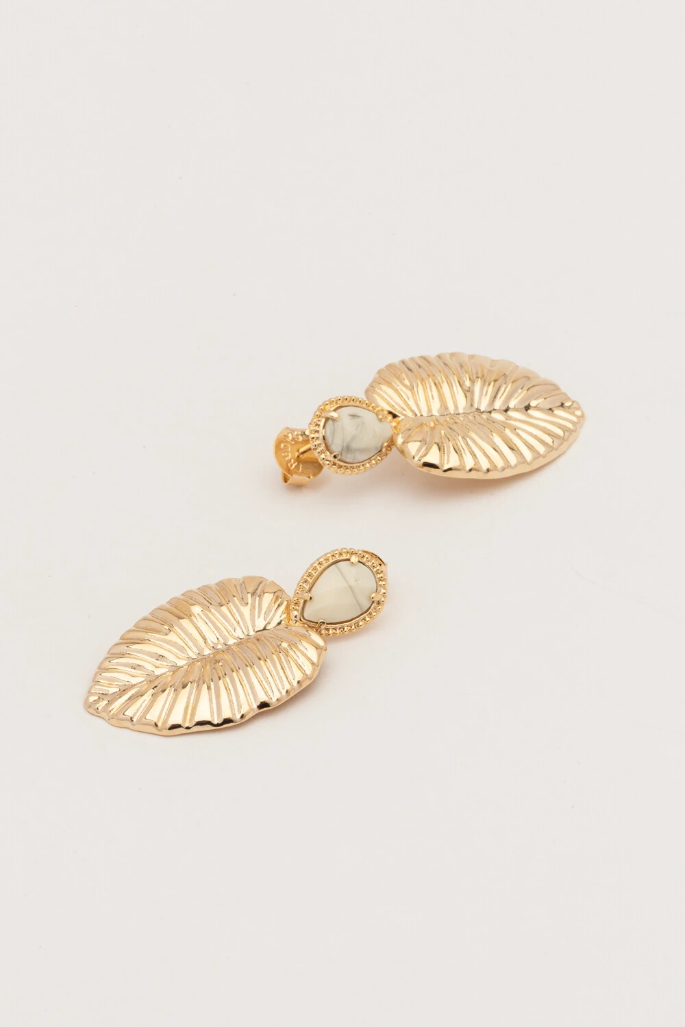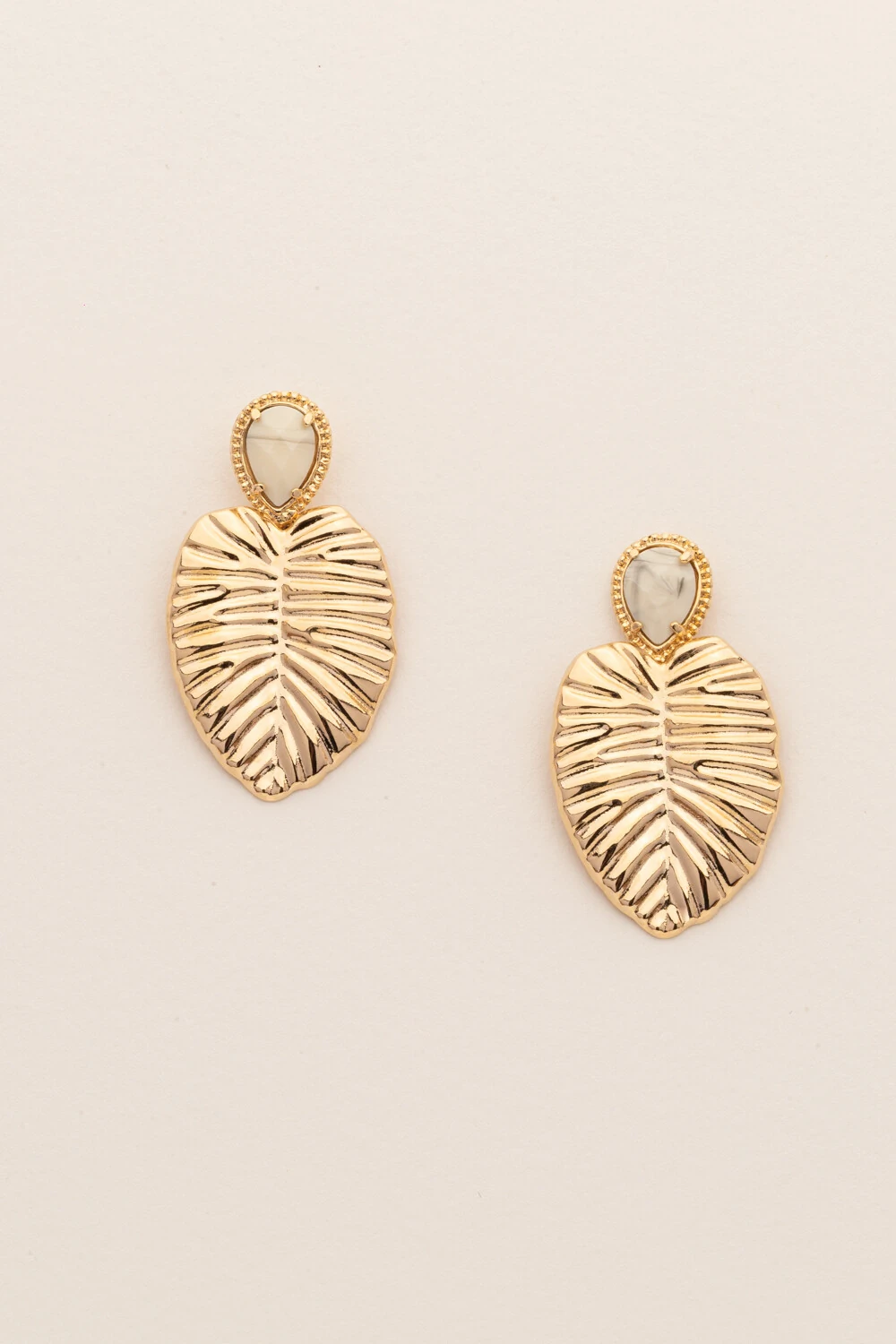 Brinco dourado com base gota em resina off-white confere um visual moderno e delicado, enquanto o detalhe em folha dourada traz um toque orgânico e refinado. É o acessório ideal para mulheres que apreciam peças com personalidade, sem abrir mão da versatilidade.