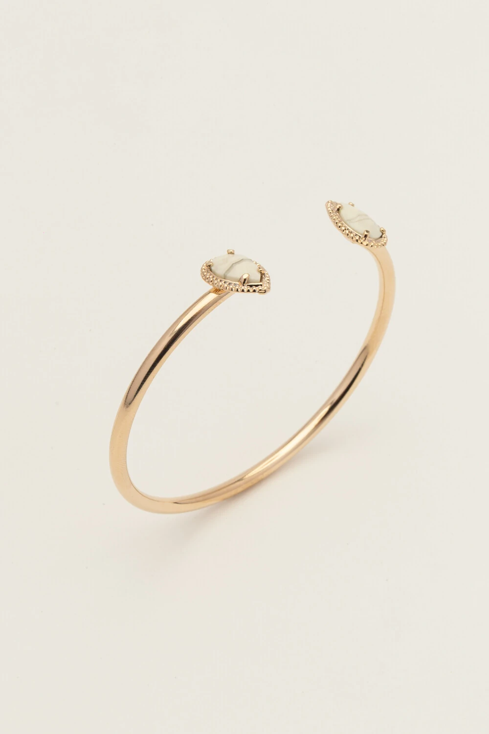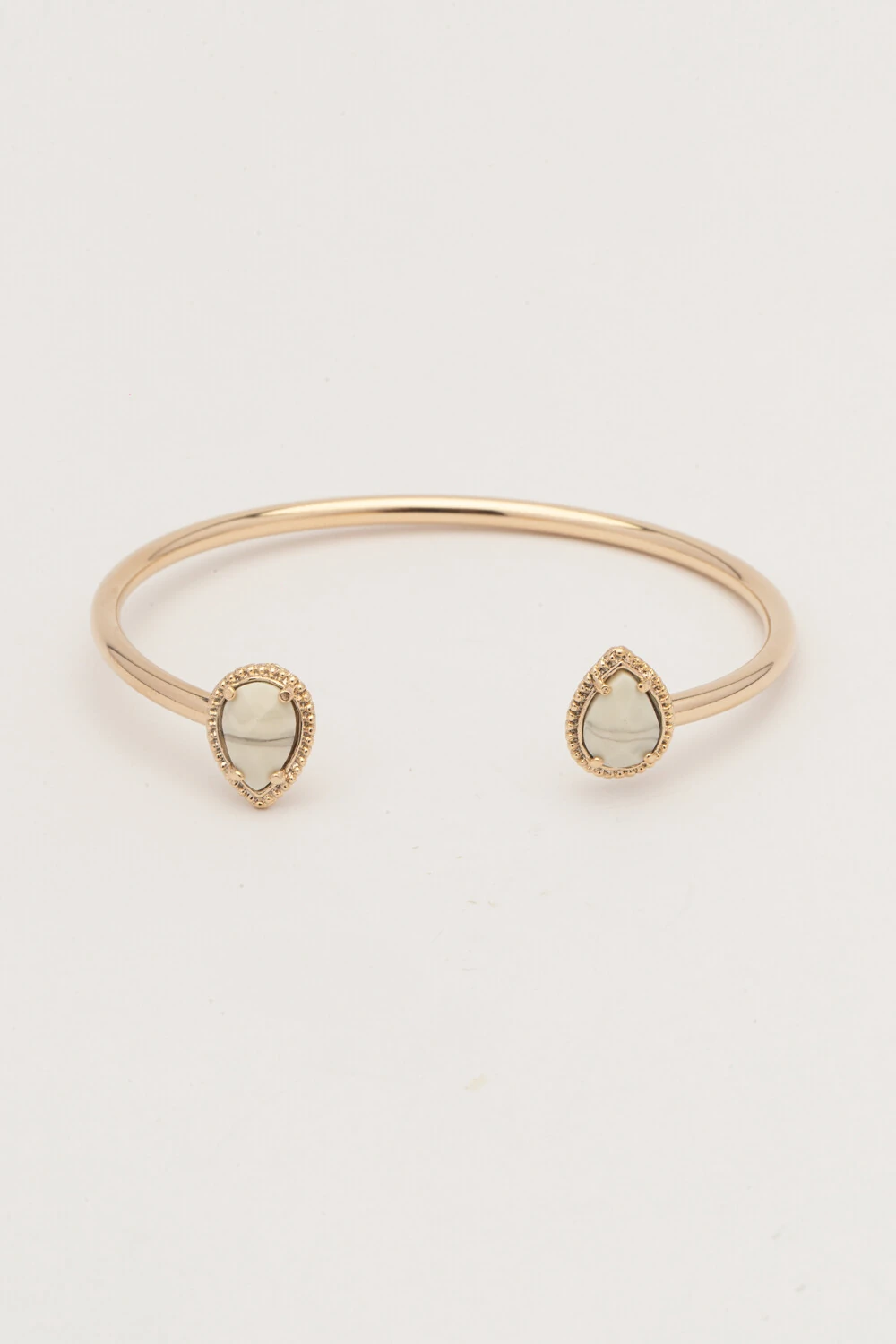 Pulseira dourada com duas gotas em resina off white. Uma peça que combina sofisticação e estilo, perfeita para compor produções elegantes ou dar um toque de glamour a looks mais casuais.