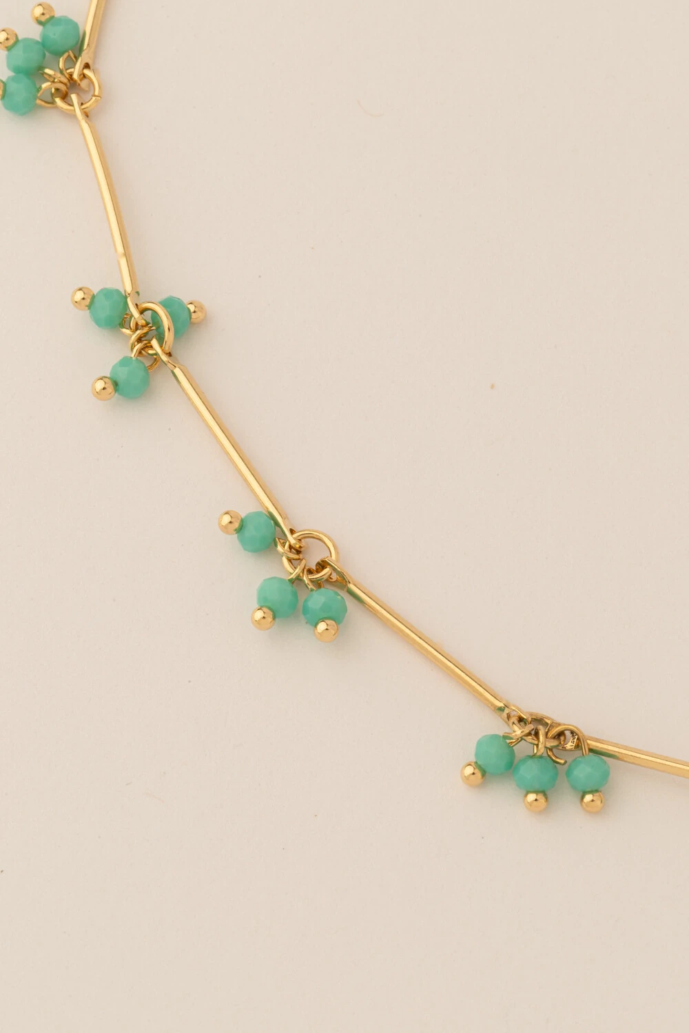 Pulseira Dourada Palitos Cachos Cristal Azul