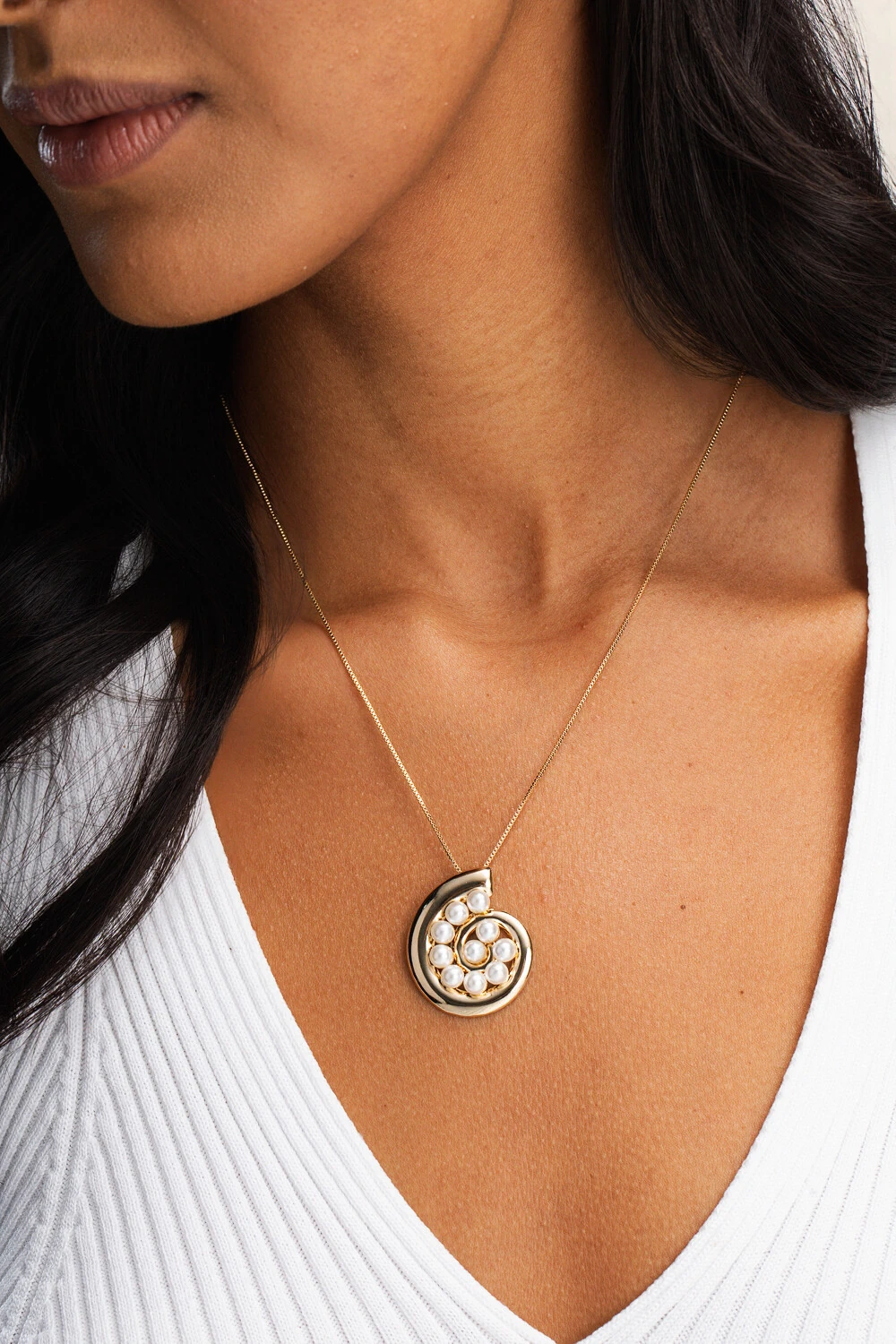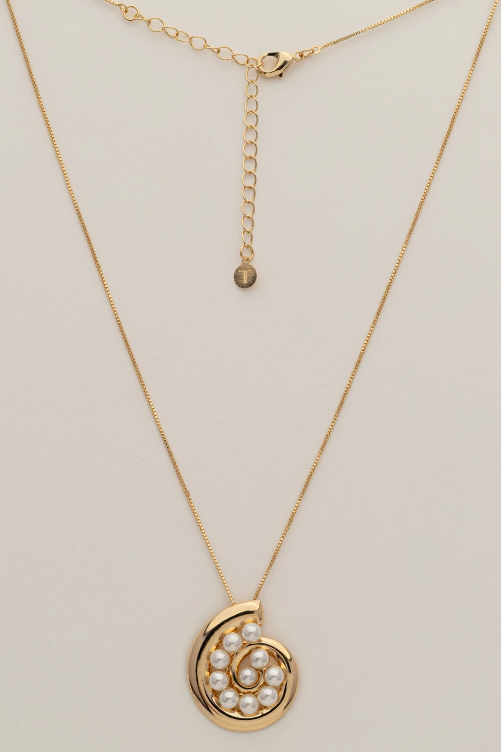 Colar veneziana dourada com pingente em formato de concha, finalizado com pérola sintética que adiciona um toque clássico e delicado. A combinação traz um visual elegante com inspiração marinha, perfeito para compor looks leves, sofisticados e atemporais, versátil e cheio de charme.