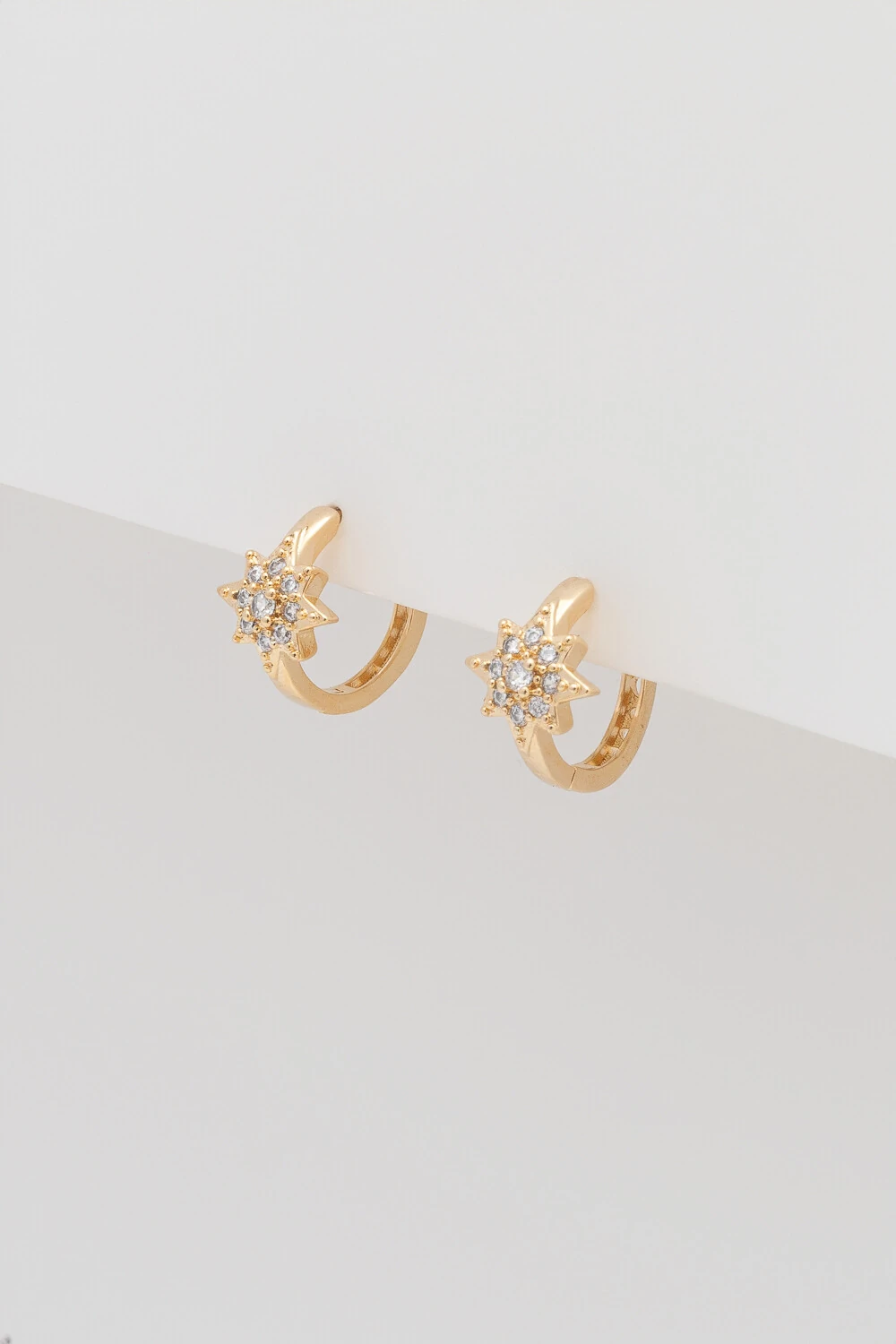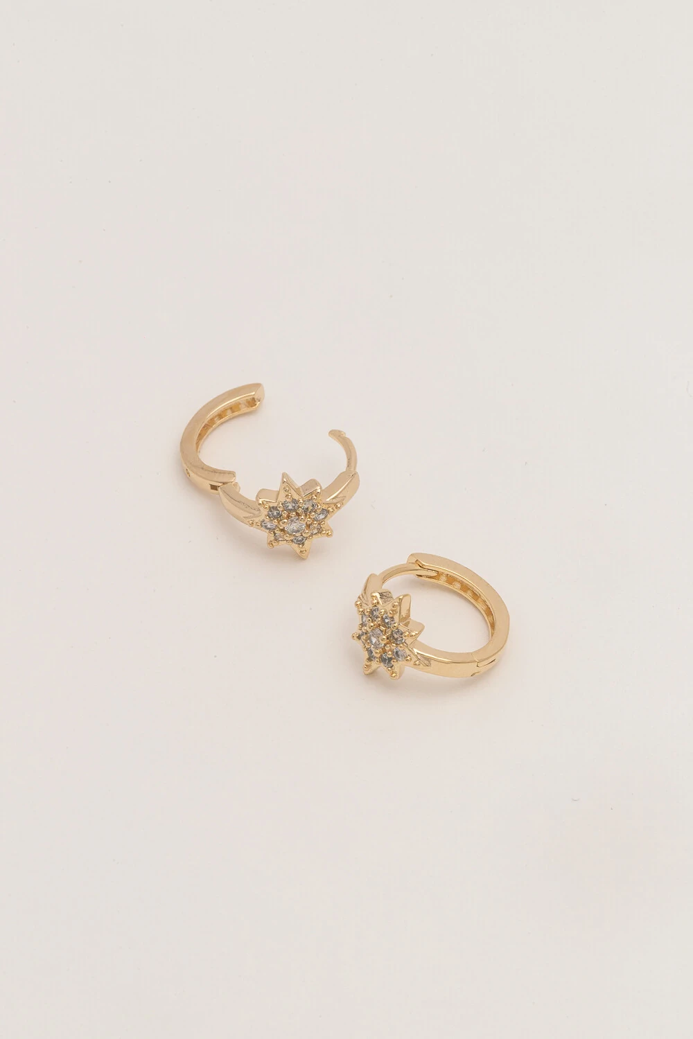 O brinco argola sol zircônias e fecho click. Delicada, um acessório que vai muito bem com diversos looks. Perfeita para compor com outros brincos na mesma orelha.