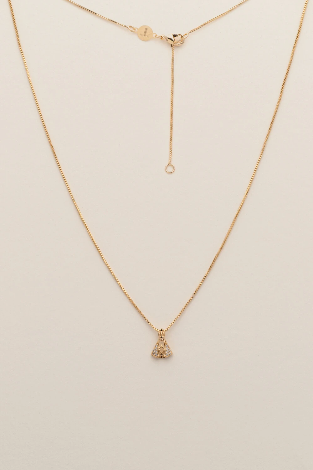 Colar nossa senhora PP manto zircônia cristal corrente veneziana Banho Ouro 18K.