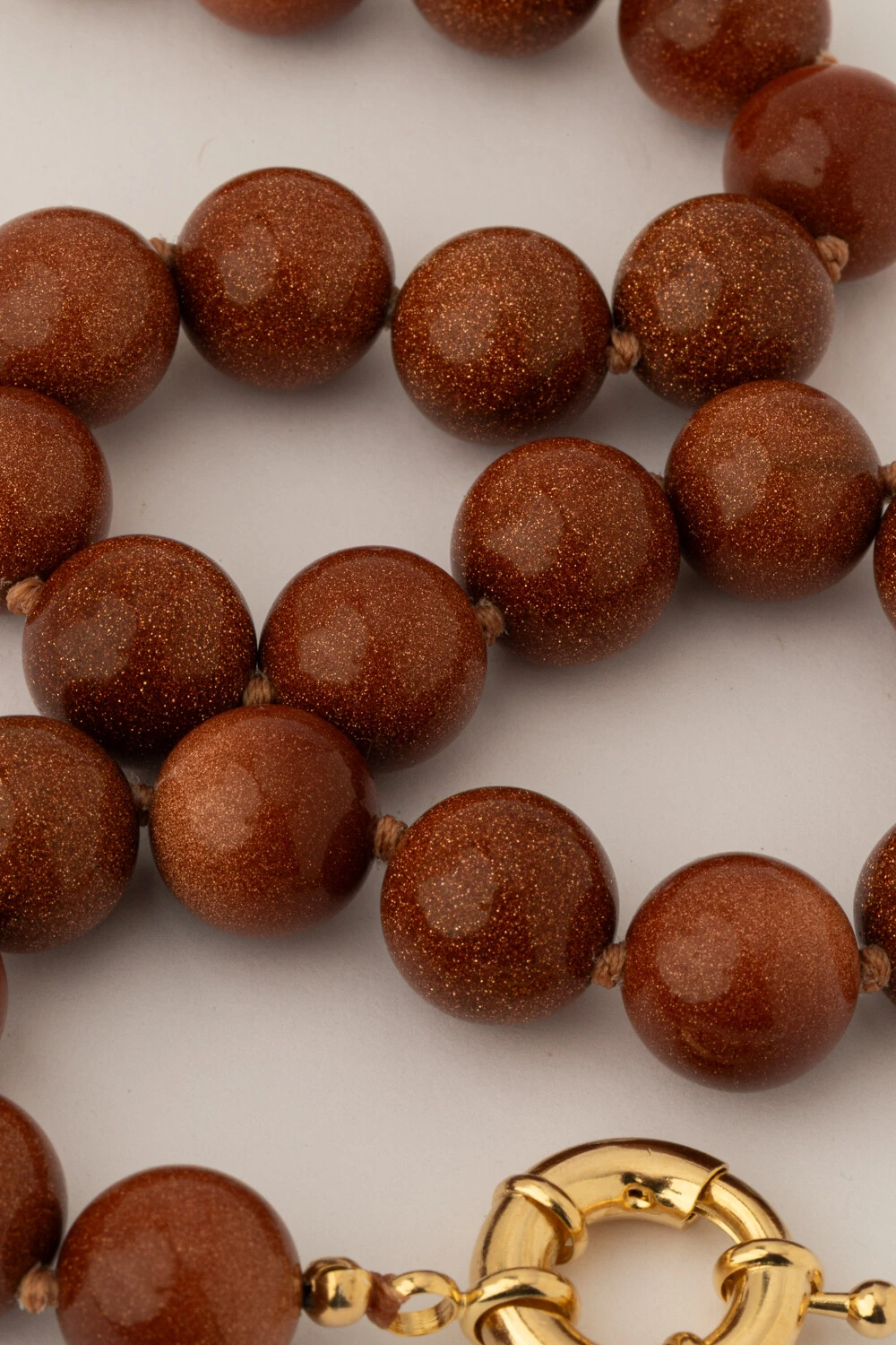 Colar curto banho ouro 18k, pedras goldstone e fecho boia. Colar marcante e cheio de personalidade, ele é capaz de transformar qualquer look e deixar ainda mais elegante.