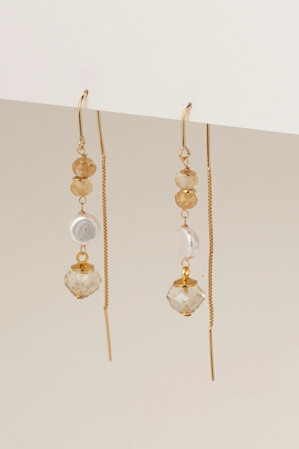 Brinco com base anzol banho ouro 18k. composta por esferas de rutilo facetado e pérola natural, energia positiva em um só acessório. O design em anzol garante leveza e praticidade, enquanto a combinação das pedras naturais resulta em uma peça sofisticada, versátil e cheia de significado.
