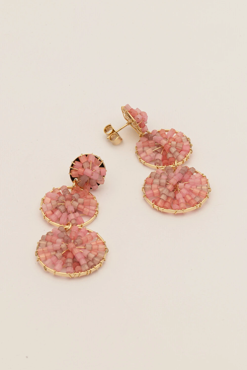 Brinco dourado 3 aros com vidrilhos rosa. leve e confortável de usar, garantindo um toque de elegância que pode elevar qualquer look.
