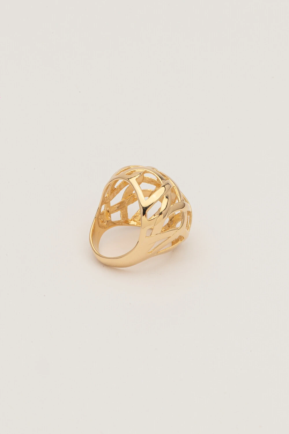 Anel esfera vazada banho ouro 18k. Uma peça arrojada que mostra a sua personalidade.