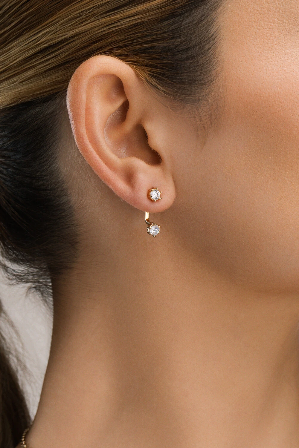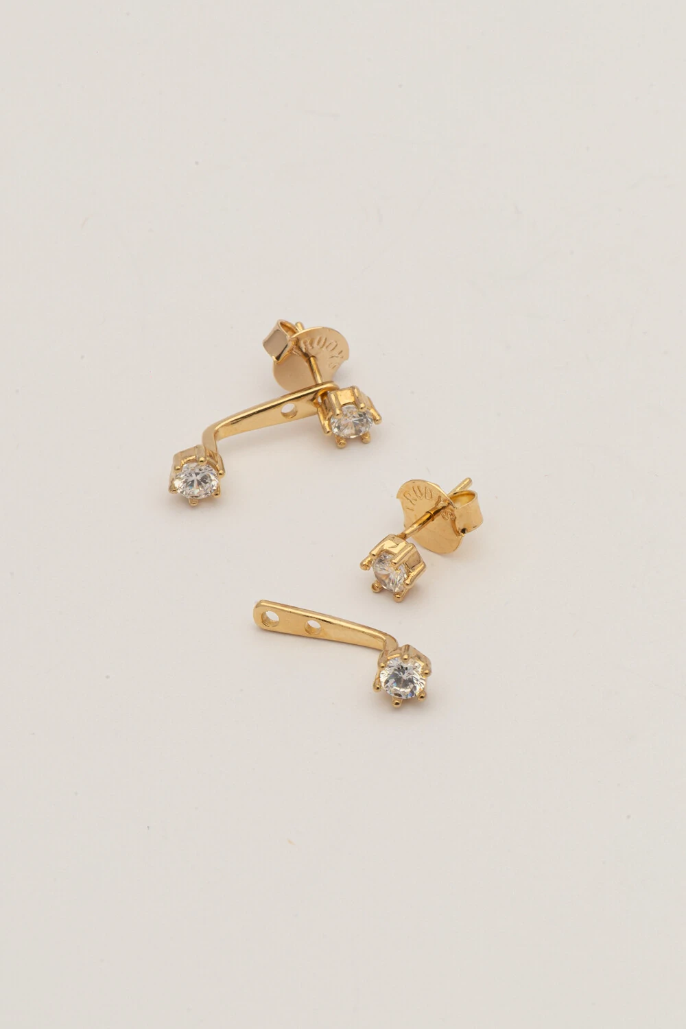 Brinco dupla de zircônia cristal em banho ouro 18K. ma peça delicada e graciosa que vai trazer muita leveza pro seu dia dia.