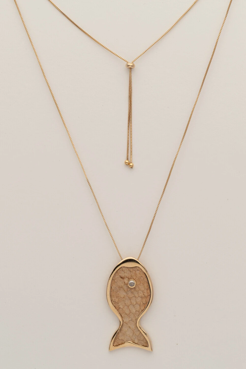 Colar Dourado Orgânico Couro Tilápia Nude