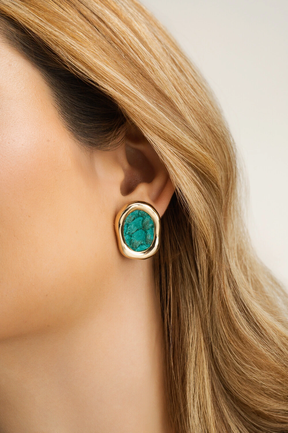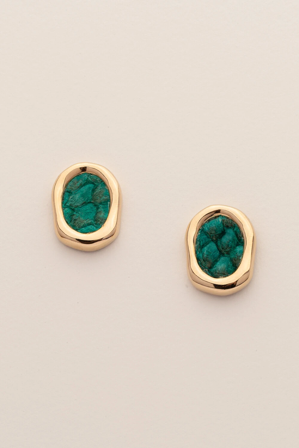 Brinco dourado orgânico couro de Tilápia Ecológico tingido de turquesa é a união perfeita entre arte, sustentabilidade e estilo. Uma peça versátil que transforma qualquer look com personalidade.