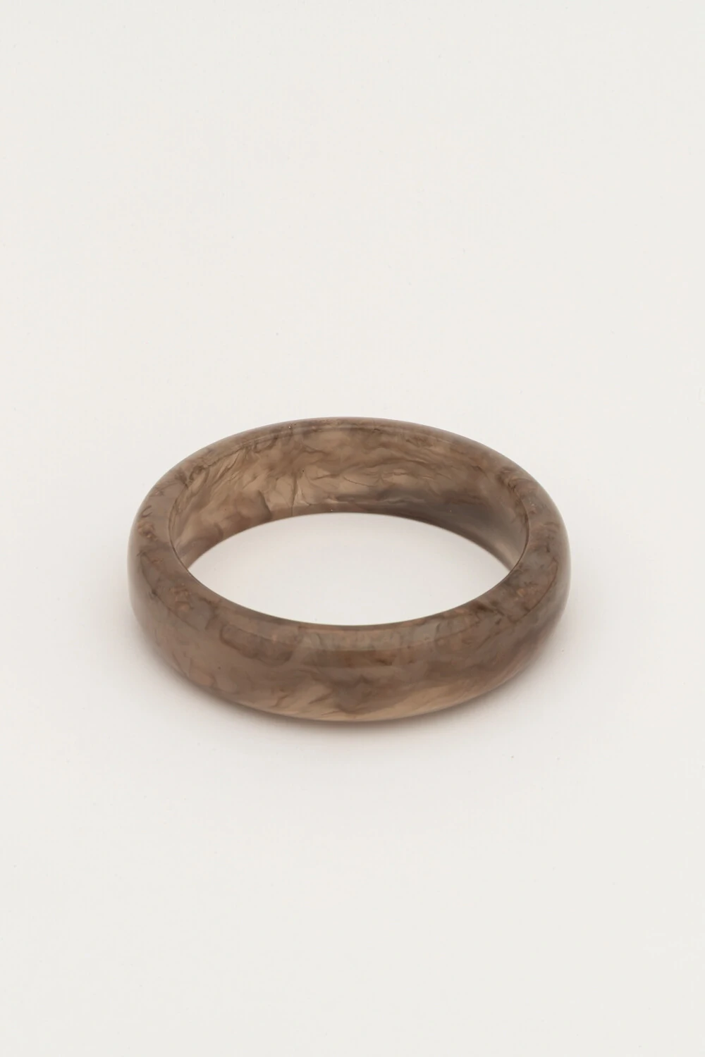 Pulseira em resina cor fendi adiciona um toque sofisticado a qualquer look. Seu design clean e impecável combina leveza, estilo e versatilidade, perfeito para usar sozinho ou em composição com outras peças. Uma escolha elegante para quem busca acessórios atuais e atemporais.