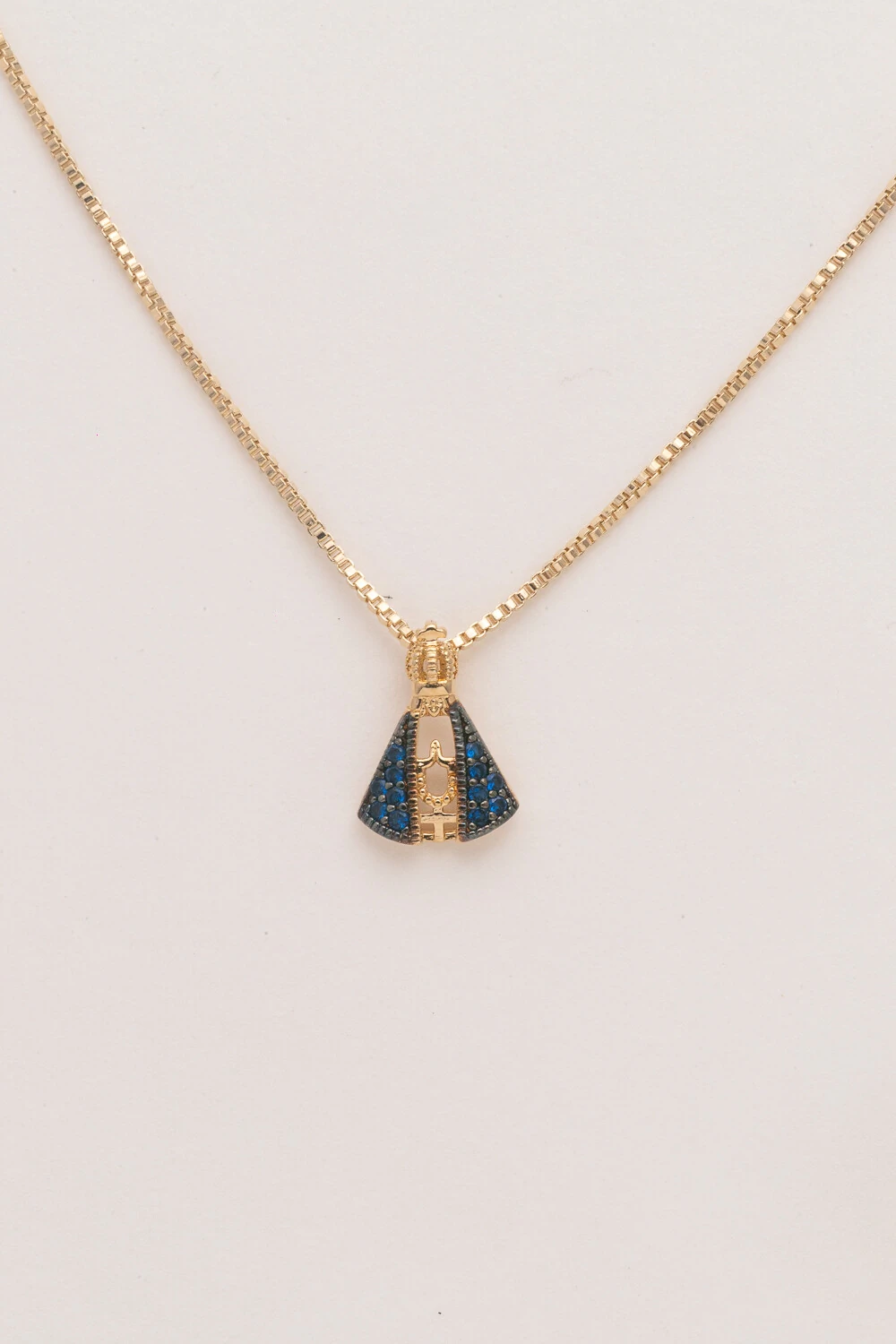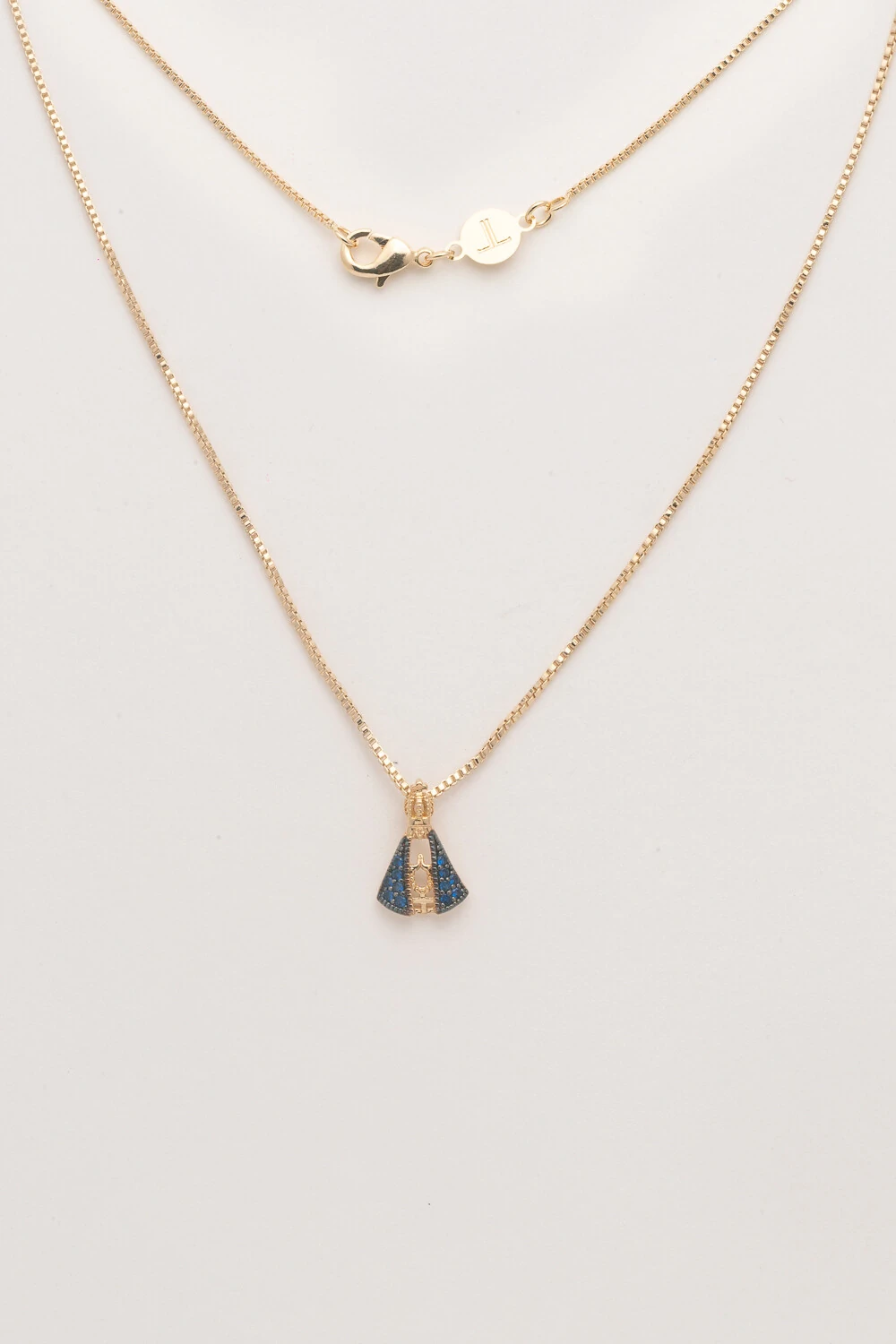 Colar nossa senhora PP manto azul corrente veneziana Banho Ouro 18K.