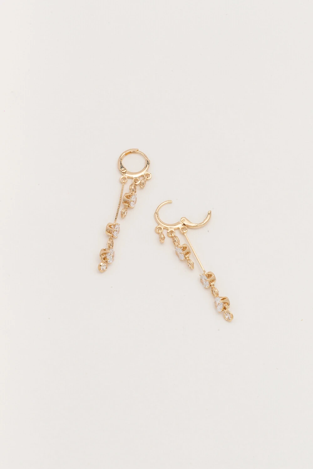 Brinco palito banho ouro 18k, com base argola click em uma delicada cascata de zircônia cristal que reflete luz com elegância e sofisticação. Um toque de glamour que transforma qualquer look.