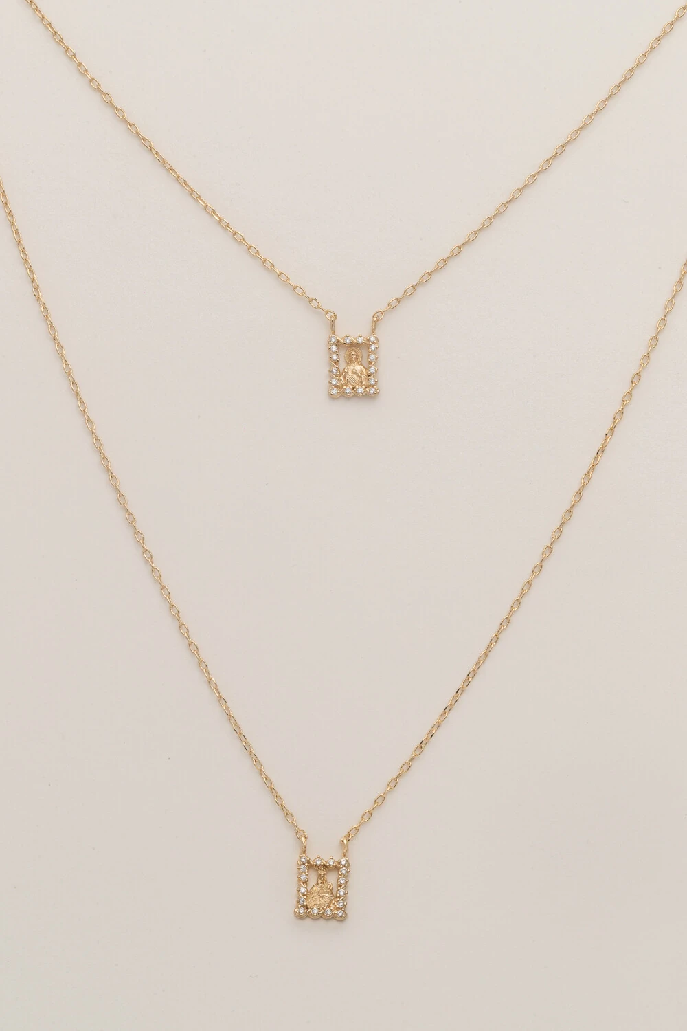 Colar escapulário zircônia Nossa Senhora do Carmo e Coração de Jesus Cristo Banho Ouro 18K, composta por corrente de mini elos Lindo e encantador.