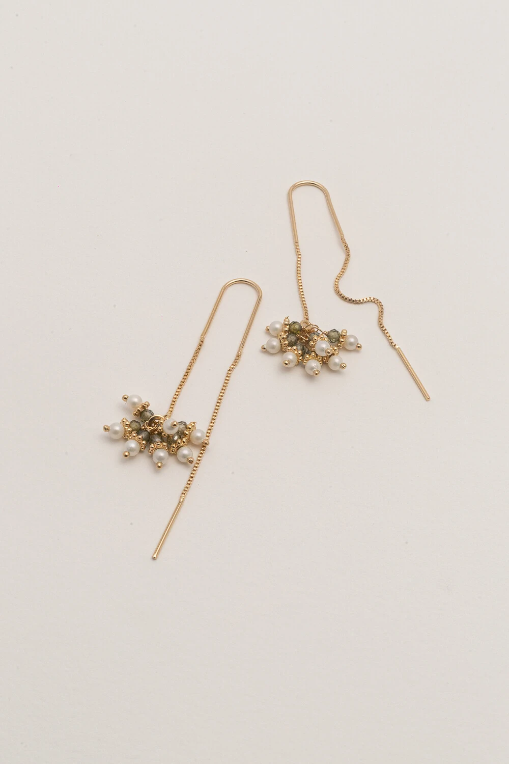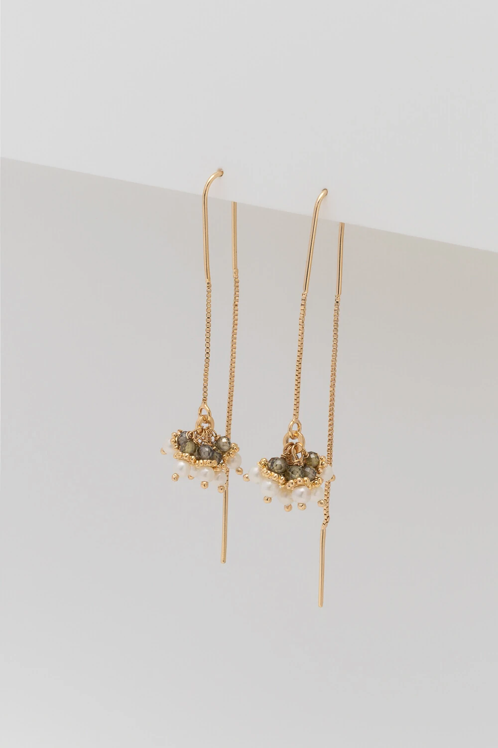 Brinco fio banho ouro 18K, com cachinho pérola e mini zircônia. Uma peça autoral que pode ser usada no dia dia ou em ocasiões especiais.