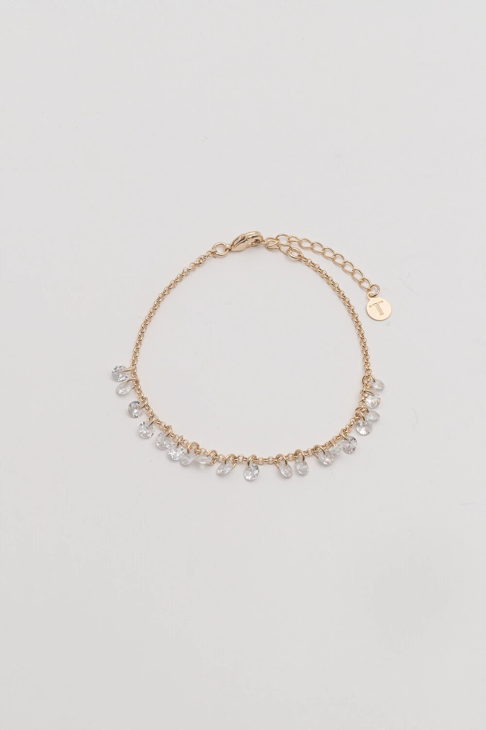 Pulseira dourada em elos portugueses e zircônias cristal, Essa pulseira fica linda tanto sozinhas quando acompanhadas em um mix com outras pulseiras lisas ou mesmo cravejadas. As zircônias dispostas pela corrente dão um brilho especial.