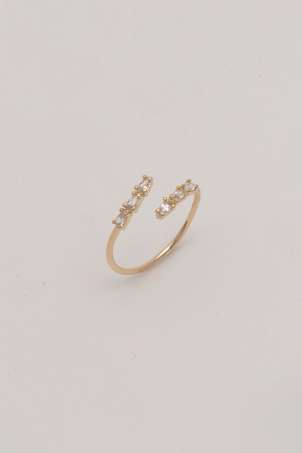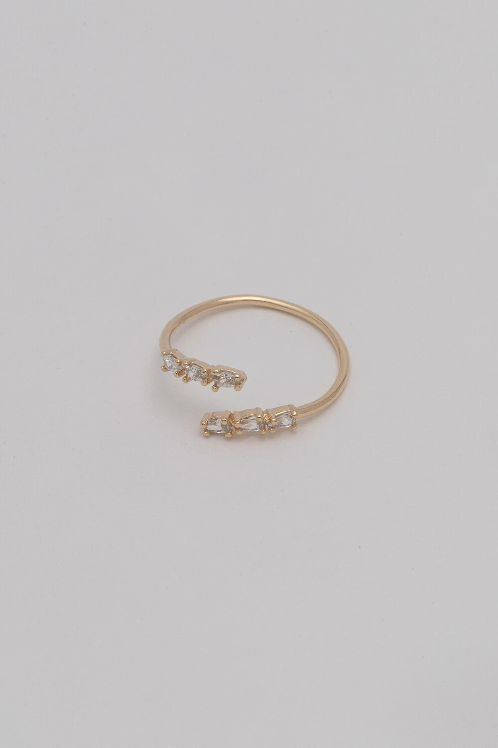 Anel encontro de zircônia navete cristal banho ouro 18K. Delicado e discreto é uma peça que fica bem em todos os looks e composições.