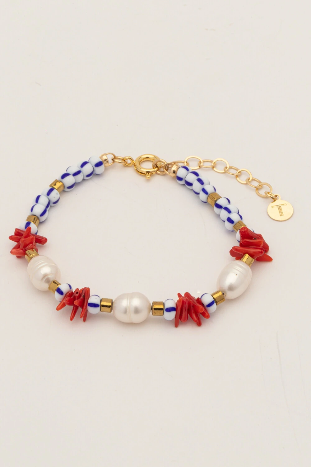 Pulseira autoral Fishermen’s Core Palito Coral, traz uma estética náutica contemporânea, combinando o brilho do banho ouro 18K com o contraste vibrante das cores vermelho e azul. Ele une força, estilo e personalidade em uma peça marcante.