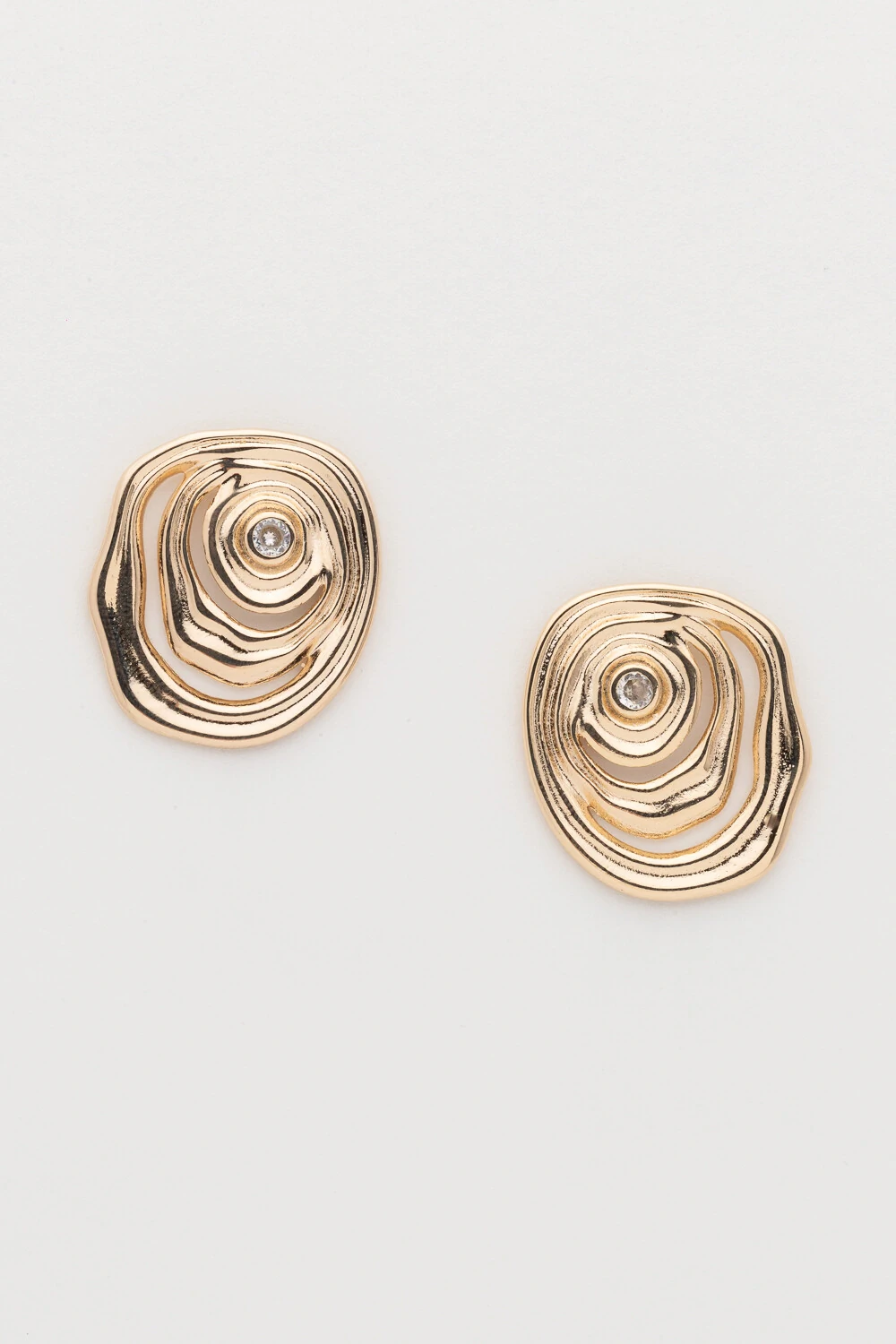 Design orgânico, moderno e cheio de personalidade, com zircônia central que adiciona brilho delicado à peça. O acabamento dourado e o formato marcante tornam este brinco ideal para looks atuais e elegantes.