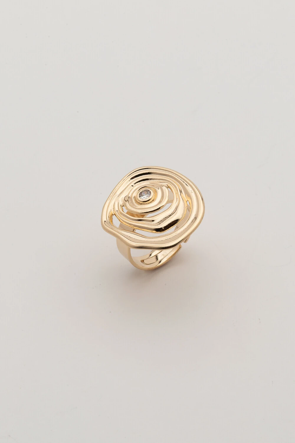 Com design orgânico e contemporâneo, acabamento dourado e zircônia no centro, este anel traduz elegância em movimento. Regulável proporciona ajuste perfeito e uso confortável.