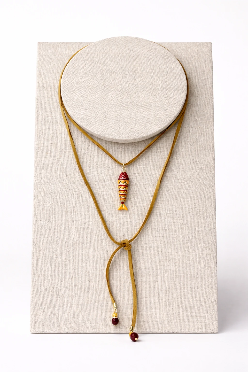 Colar em camurça com pingente de peixinho porcelana, inspirado no estilo Fisherman’s Core. Leve, despojado e cheio de personalidade, é perfeito para compor looks modernos com um toque artesanal e náutico. Ideal para composições estilosas, usado sozinho ou combinado com outros colares.