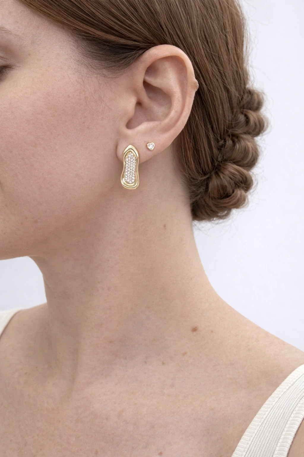 Moderno e sofisticado, o brinco com placa de design orgânico traz um visual elegante e contemporâneo. O formato irregular valoriza a estética natural da peça, enquanto a zircônia adiciona brilho delicado e refinado.