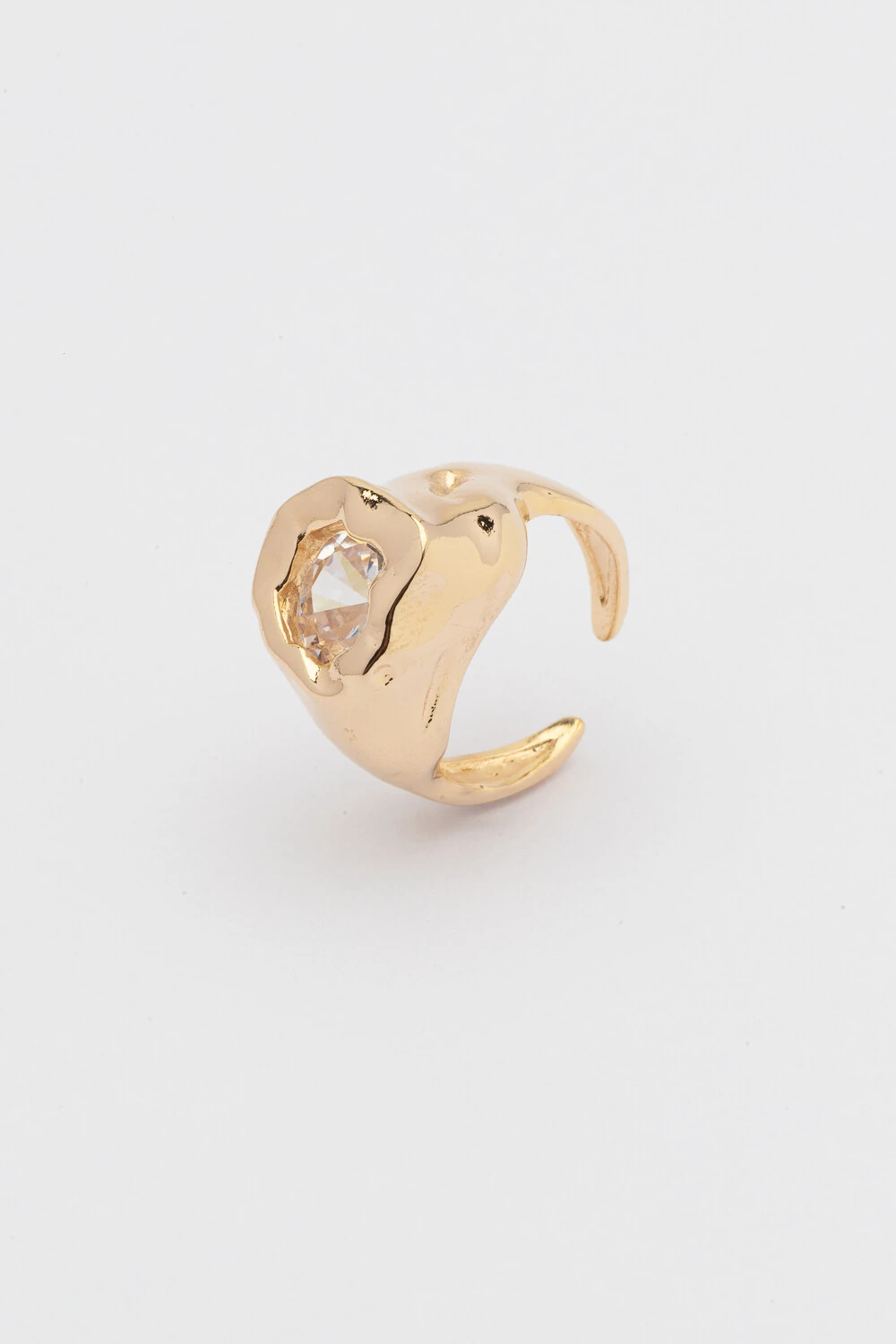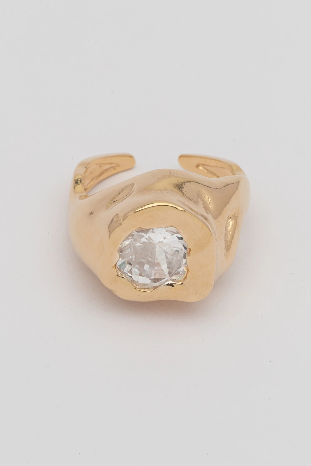 Elegante e sofisticado, o anel dourado Vesúvio com zircônia cristal se destaca pelo design moderno e pelo brilho delicado da pedra. A zircônia cristal traz luminosidade à peça, valorizando as mãos com um toque de charme e requinte.