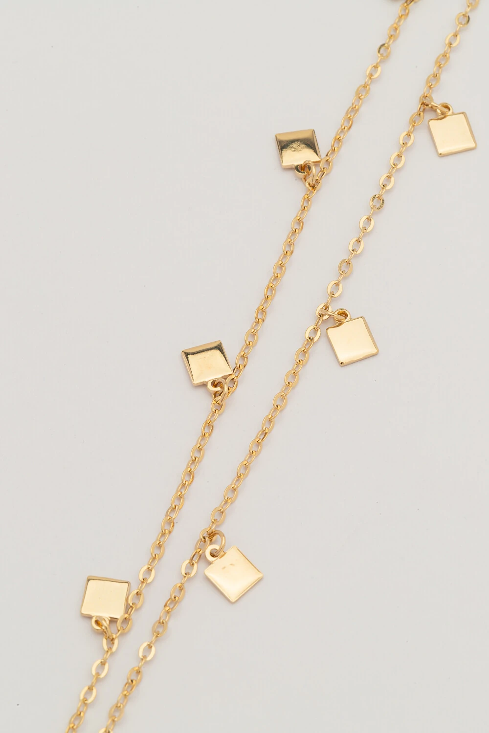 Elegante e moderno, o colar longo com plaquinhas em cubos lisos traz um design leve e sofisticado. As pequenas placas criam um efeito de movimento e brilho sutil, valorizando o visual com delicadeza, é perfeito para usar sozinho ou em composições com outros colares, complementando looks do dia a dia ou ocasiões especiais com estilo.