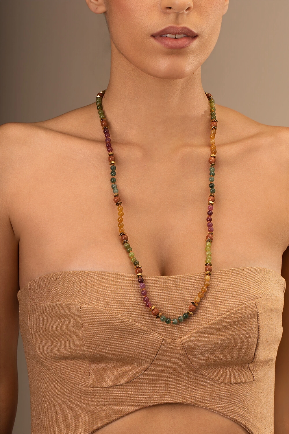 Colar Longo Mavie Jade Terracota Banho Ouro 18K