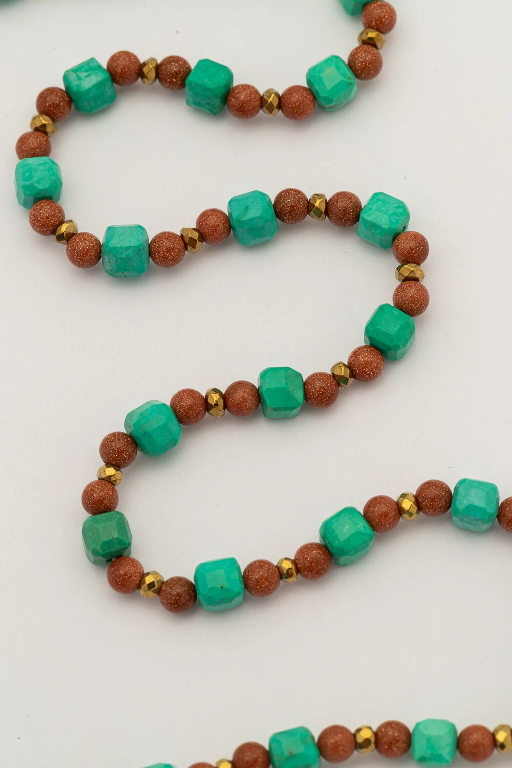 Autoral e sofisticado, o colar choker Vicenza combina o brilho intenso da goldstone com a suavidade da howlita, criando um contraste elegante e cheio de personalidade. Seu design moderno valoriza o colo com um toque contemporâneo e refinado.