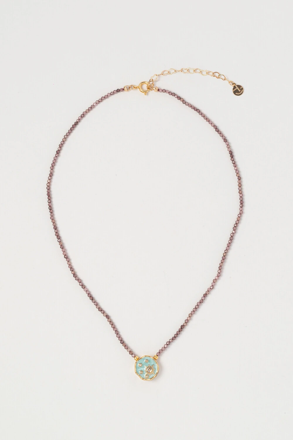 Delicado e sofisticado, o colar Luna com mini zircônia lilás traz um design elegante que valoriza o colo com sutileza. O brilho suave da zircônia em tom lilás adiciona um toque de cor e feminilidade à peça.